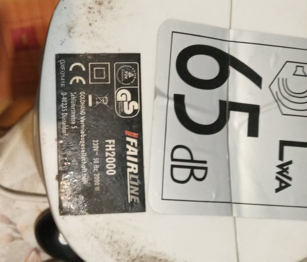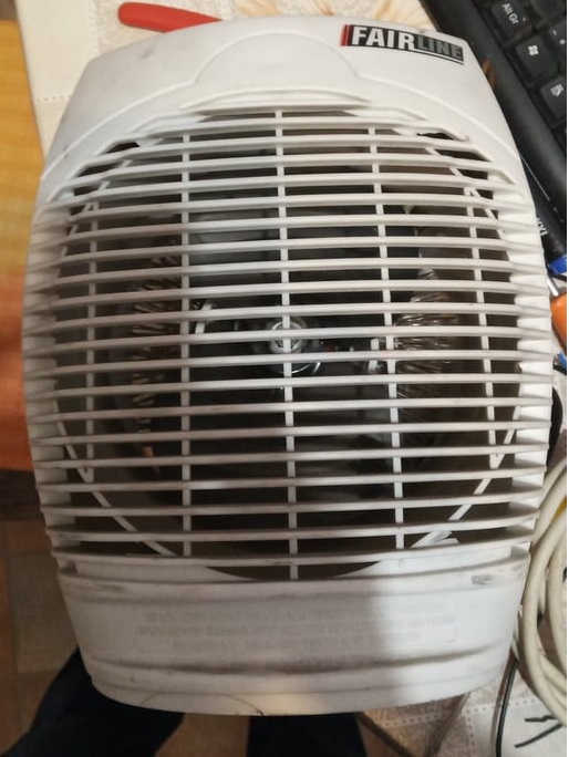 Kispestről elvihető ventis hősugárzó. A kábelét levágták, pótolni kell, bepöccintettem, motor forog lehet egy kis kenés nem árt neki, fűtés megy.