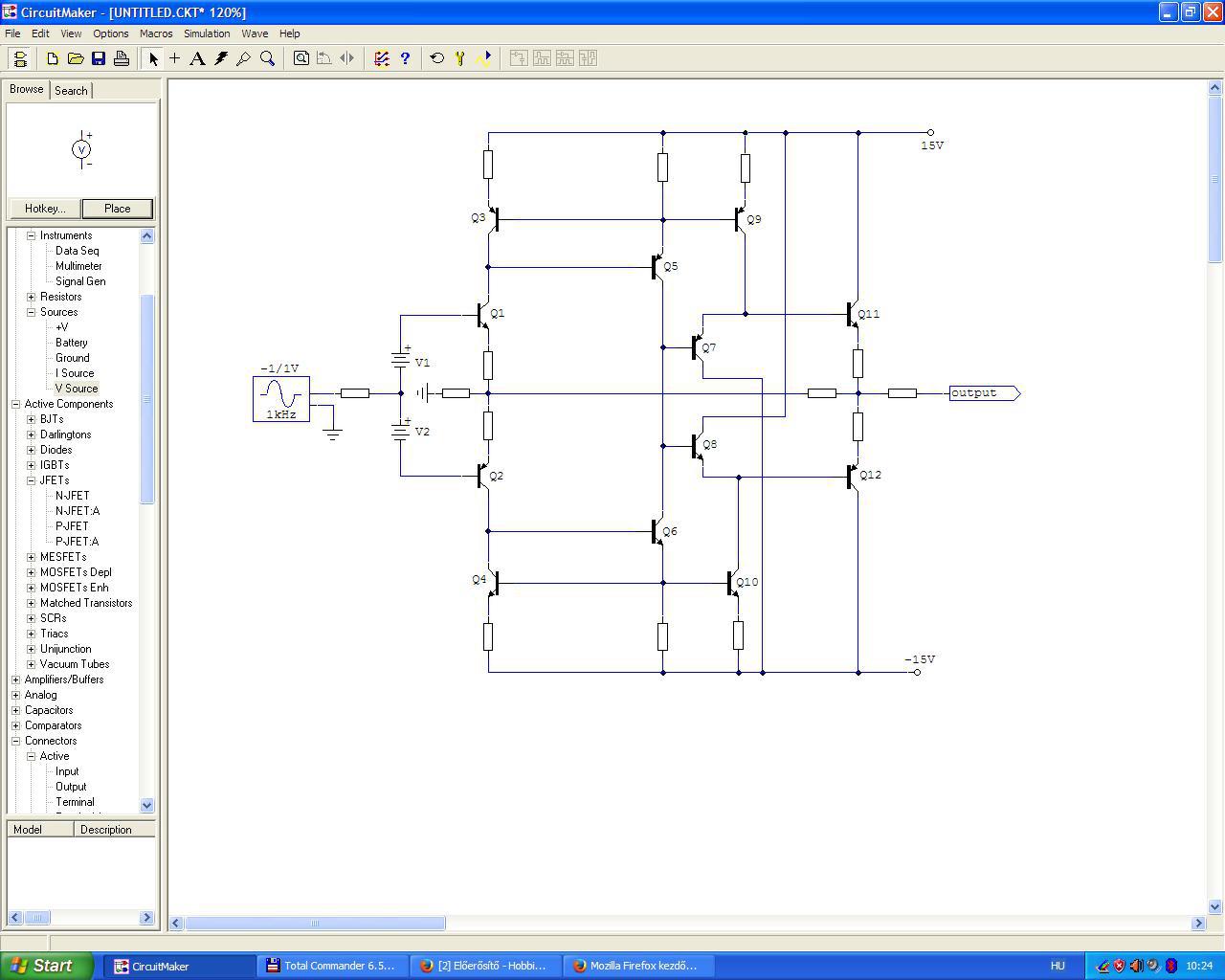 Már "csak" azt a fránya "V1-2" ideális feszültséggenerátort és a bemeneti impedanciaillesztést kellene jól kitalálni. Ezt a legnehezebb.