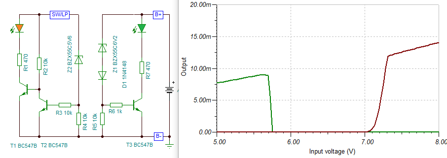 A másik egységet (piros Led) meg a kapcsoló utáni lámpa (SW/LP) pontra, mert az némileg fogyaszt, de ott csak akkor ha fel is van kapcsolva a lámpa. Máskor meg nincs értelme hogy a feszültség csökkenést mutassa.