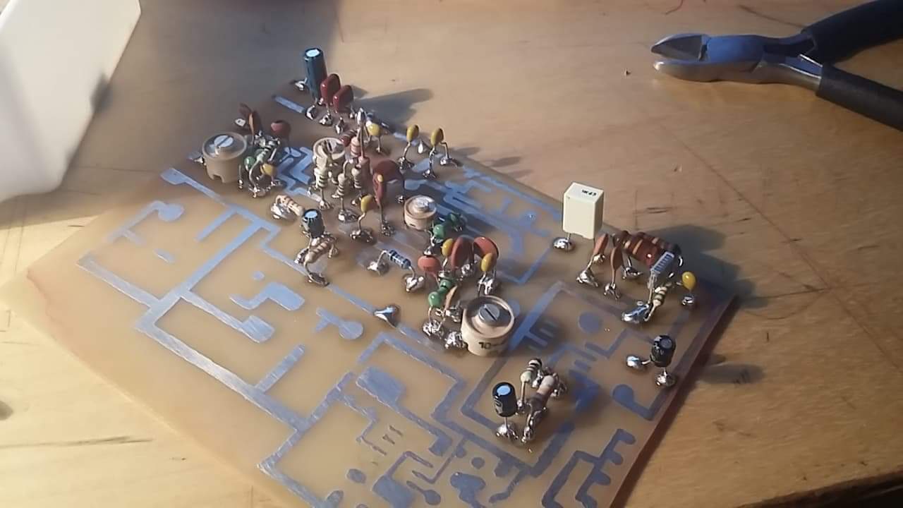 Smd furatszerelt alkatrészekkel 20Mhz-re ,érdekes lesz a behangolás .