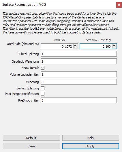 1) a jobb oldali narancsos sárgás mezőben lévő kulcsos ikonra kell kattintani és szerencsés esetben a Repetier ki tudja javítani a modell felszínét (8320e procis gép 16GB memóriával és 1050NVidia kártyával nem volt neki elég hozzá ennél a darabnál) 2) másik programot kell használni, ami esetemben a MeshLab, ott pedig a szűrők közül meg kell keresni a Remeshing, Simplification and Reconstruction alatt a Surface Reconstruction közül az egyik fajtát (itt a VCG hozott jó eredményt) és annak a paramétereivel játszani Ez utóbbi program ezekkel a szűrőkkel szépen meg tudja javítani az STL fájlt igaz lehet, némi degradáció árán.