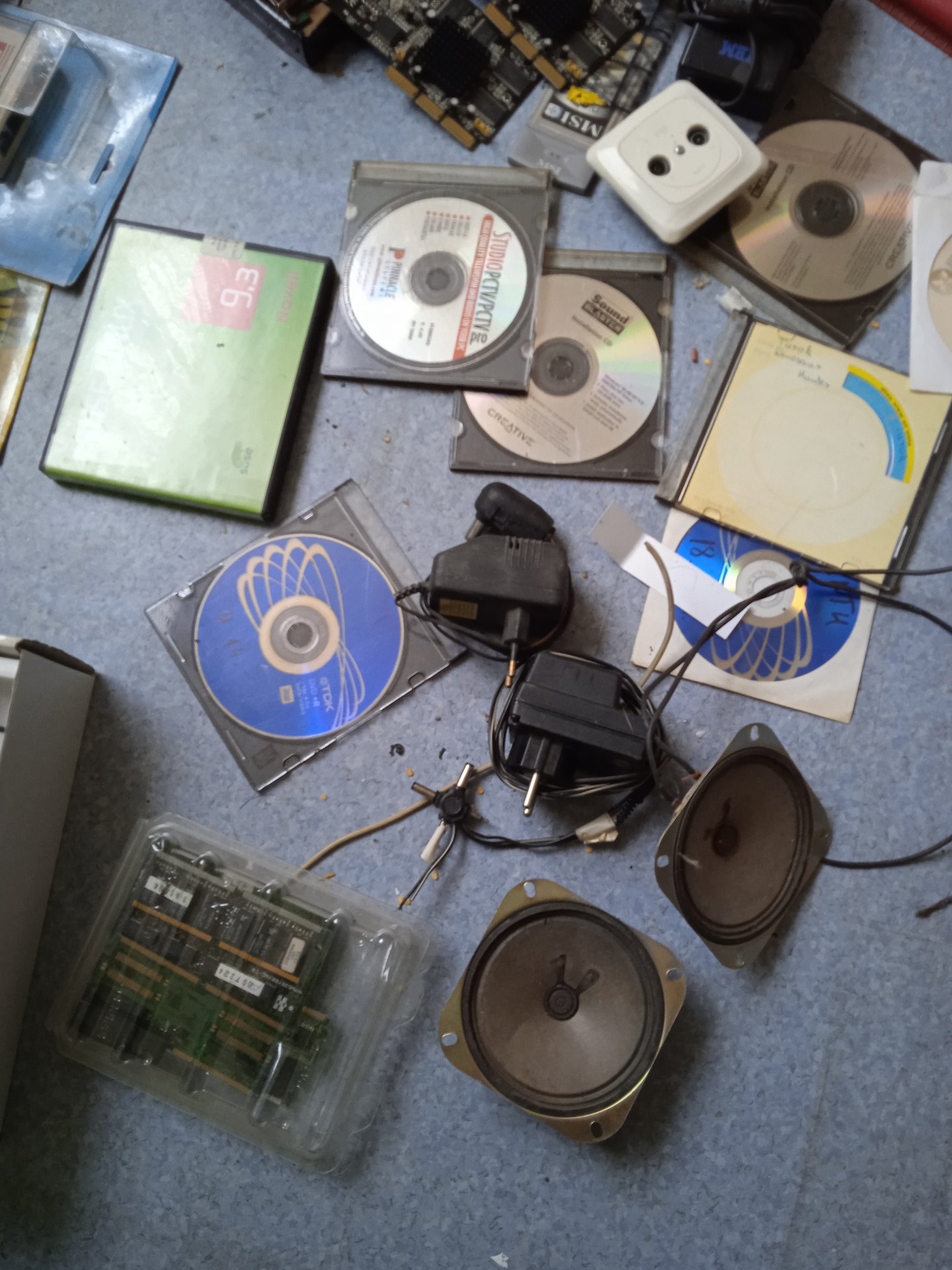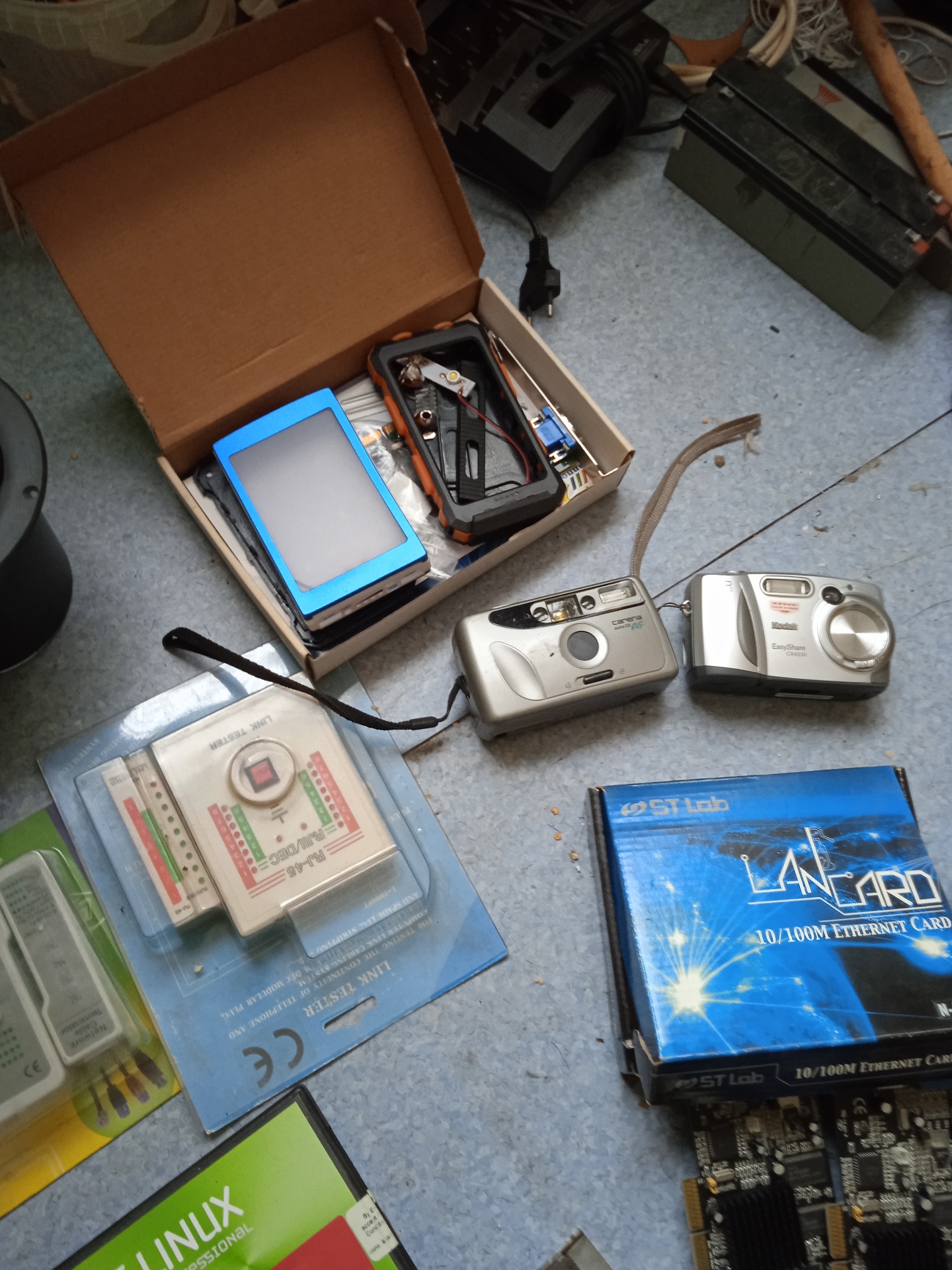 A Hobbi Elektronikából származó katalógus lapok illetve "levilágító filmek" egy csomó dossziéba összegyűjtve, két utp teszter (talán mindkettő működik de az egyik biztosan), power bank dobozok, filmes illetve digi fényképezőgép, pár távirányító, diódák hűtőbordán, adsl modem szinte új, Ilyen olyan cd - k SUSE linux gyári kiadástól a win98 se ig, régi monitorvezérlő, SB 128, PCI hálókártya, DIM ramok, meg még a penész tudja mi.Minden ami a képeken van. GLS el tudom küldeni (kb 1600 / csomag) de jobb ha érte jöttök.