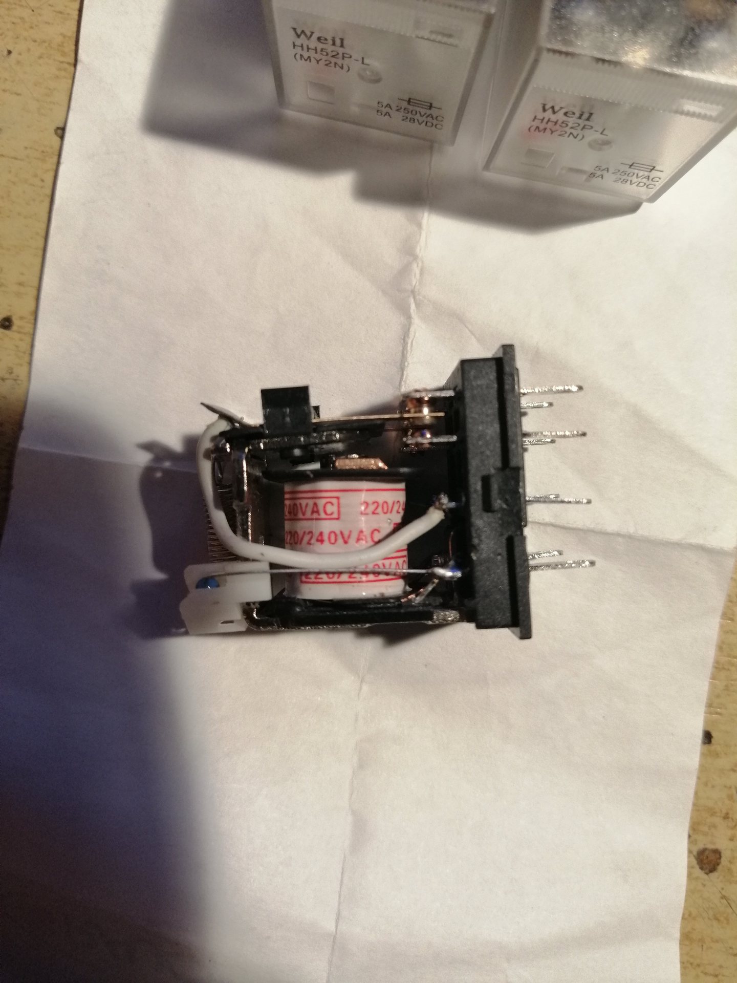 Szóval; adott a relé, amit úgy rendeltem, hogy 230V kapcsolására legyen képes 230V-os tekercs ellátásával.
