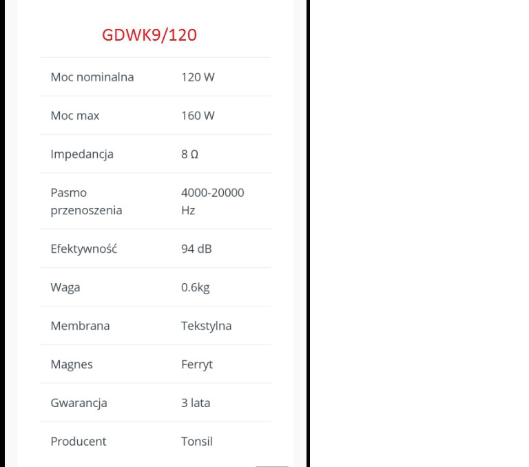 A GDN30/100/11 egy 100W-os hangszóró...a doboz meg már 150/300W-os. Engem ez nem győzött meg! Ezer éve ismerjük a lengyel Tonsil cuccokat...de akkortájt még egy nullával kisebb számot írtak a hangszóróikra. Párat sikeresen le is égettem a 40W-os erősítőmmel...