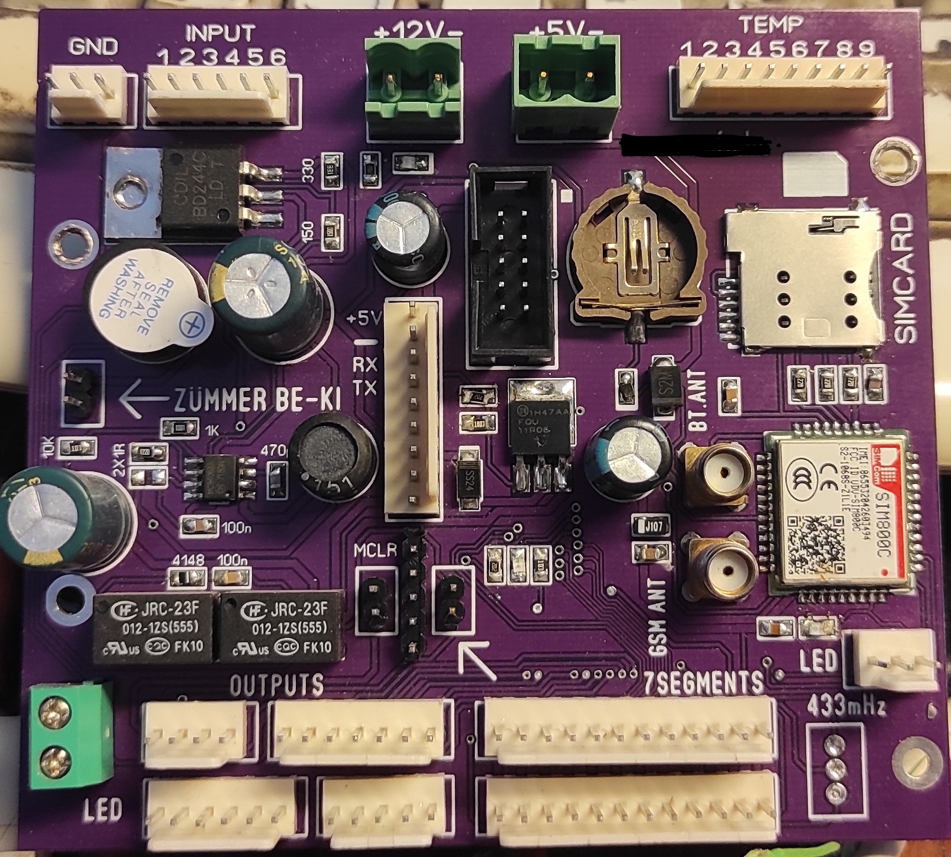 Adott egy (1000L-es belső csőkígyós) puffer, ezt fűti a fatüzelésű kazán.A tűz kialvásának érzékelése azért fontos nálam,hogy a tűz leégését követően a kéményhuzat ne hűtse vissza a kazánon keresztül a puffert,ugyanis miután leégett a tűz, a kazán-puffer körön tovább kering a víz, szóval a kazán kb.mindig egy hőfokon van a pufferrel. A pufferben 4 helyen van hőszenzor a gyárilag kialakított csonkokban, a kazánban pedig az előremenő csövön. A tűz leégését "közvetett" módon érzékelem.Abból indultam ki, hogy a pufferbe hőt bevinni csak akkor lehet, ha a kazán víz hőmérséklete legalább 5-10 fokkal magasabb mint a puffer hőmérséklete.(mivel elég rendesen rétegződik a víz a pufferben, az sem mindegy hogy melyik hőmérsékletet vesszük alapul, én a két felsőből átlagot számítok, tapasztalataim szerint így jó) Így a kazán és a puffer közötti szivattyú vezérlése hőfok különbség alapján történik, persze hiszterézisekkel.(Illetve 40 fok alatt nem indulhat a szivattyú, 85 fok felett meg mindenképpen indul.)A gyakori ki/be kapcsolgatást elkerülendő még 5 perc utánfutási ideje van a szivattyúnak.(kb 5x indul a szivattyú egy begyújtás alatt)Amikor már 45 perce nem indítja a vezérlés a szivattyút, az azt jelenti, hogy leégett a tűz.Ekkor egy elektromágnes oldásával elzárja a kazán levegőellátását.