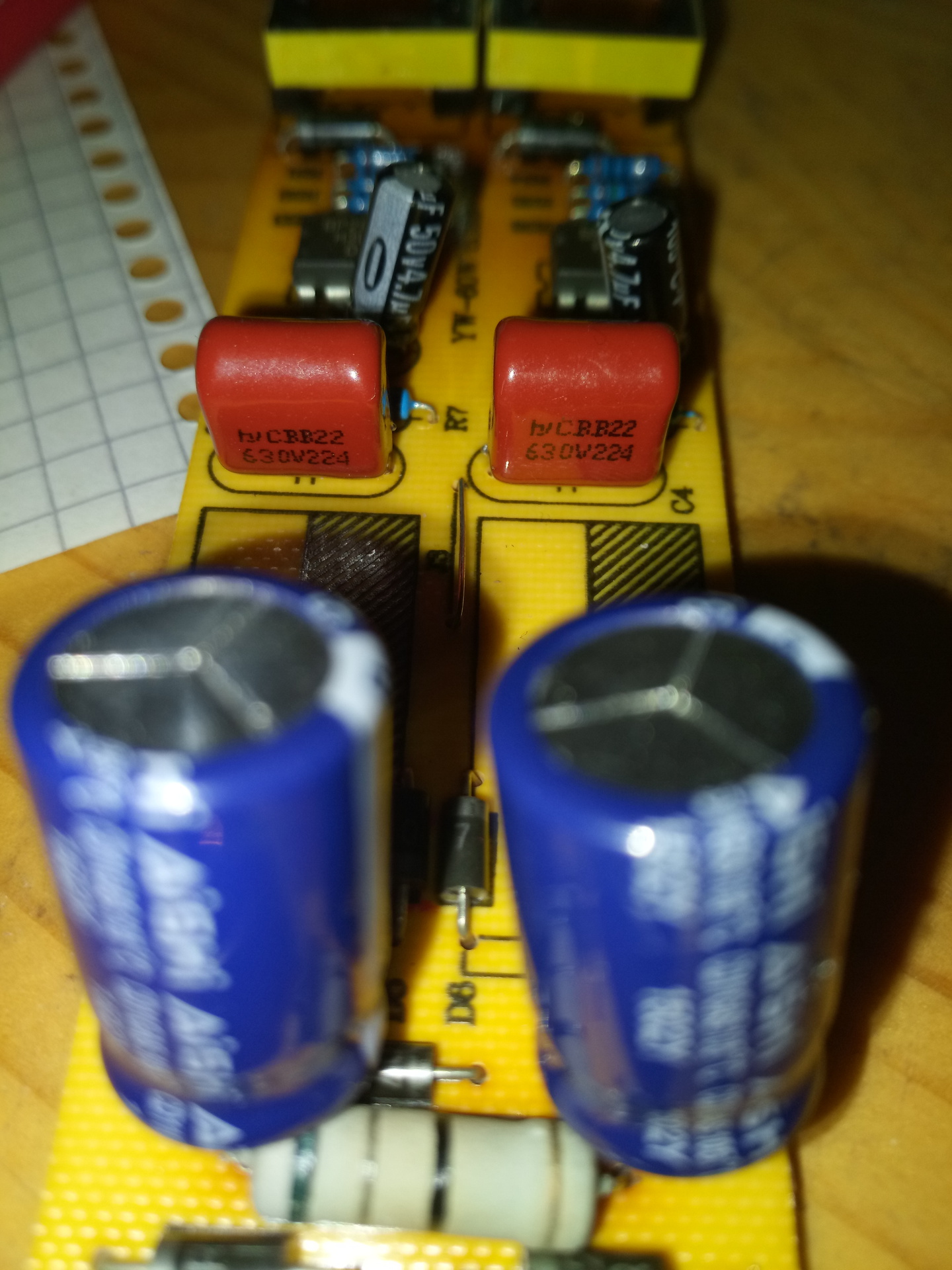 Ha meg tudod oldani, mérj rajtuk feszültséget (vigyázva!) üzem közben. Ha több, mint 250 V-ot kapnak (valószínűleg 300 V környéki eredményt kell mérned), már cserélheted is őket nagyobb feszültségűekre. Tipikus távolkeleti hanyagság és/vagy spórolás.