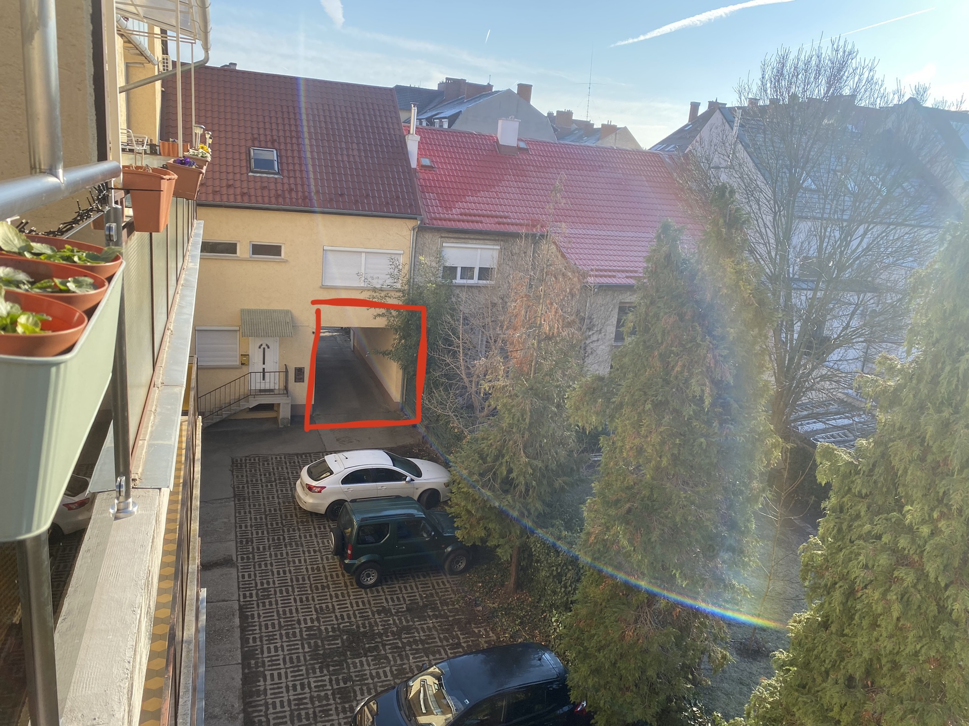 A pirossal megjelölt átjáró végében van a kapu.