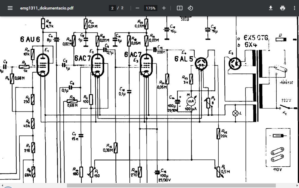 Tulajdonképpen nem a rajz szerinti tápot alkalmaztam hozzá, hanem egy jól szűrt stabilizált verziót építettem amiben a fűtés is stabilizált DC, de az elején EZ80-al kezdtem, amivel szintén kiakadt induláskor. Átlapolt fokozatkapcsolót nem hiszem, hogy be tudok szerezni, a jelenlegi is egy HF csővoltmérőben volt 2 tárcsás de nem átlapolt sajnos. Mindenesetre kipróbálom az ötleteket és jelentkezem köszönet Mindenkinek!