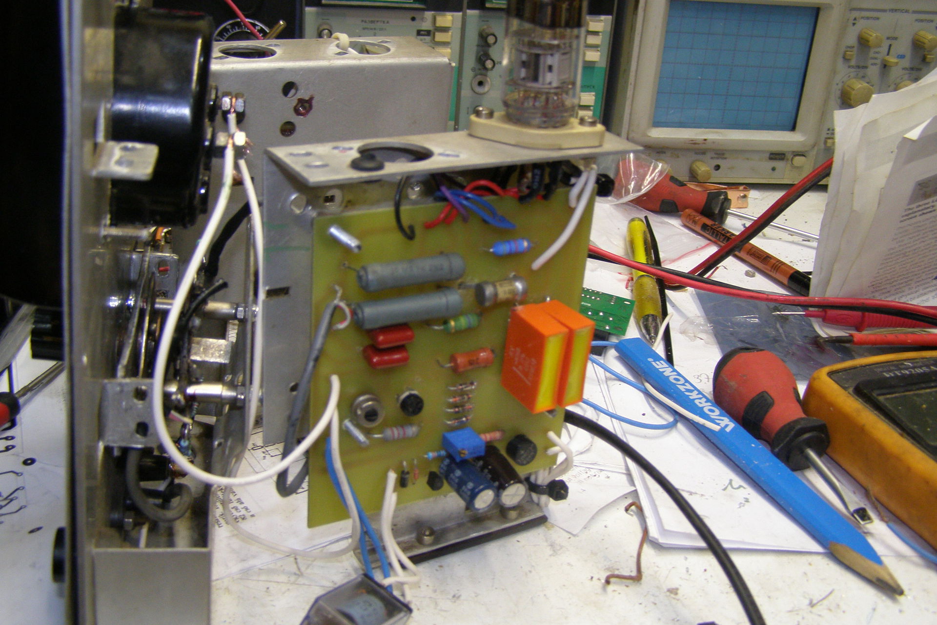 Van egy működő, de az nem hangfrekvenciás hanem általános V-Ohm csővoltmérő. ott is libeg ide oda míg bemelegszik, de nem kongatja a végkitérést.
