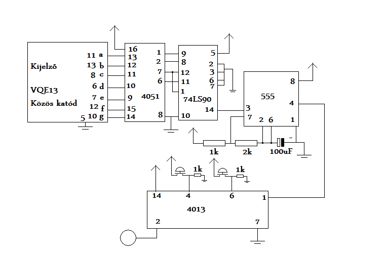 Bocs. DE a 4051-et kicsit más célra készítették! Idézet: „8-Channel Analog Multiplexer/Demultiplexer” Meg a 4013 másik (nemhasznált) tároló bemeneteit is határozott logikai szintre kell kötni! ( Minden nemhasznált CMOS bemenetet! ) Jobblenne PLD 4511-et használni a kijelző dekódolására - meghalytására...