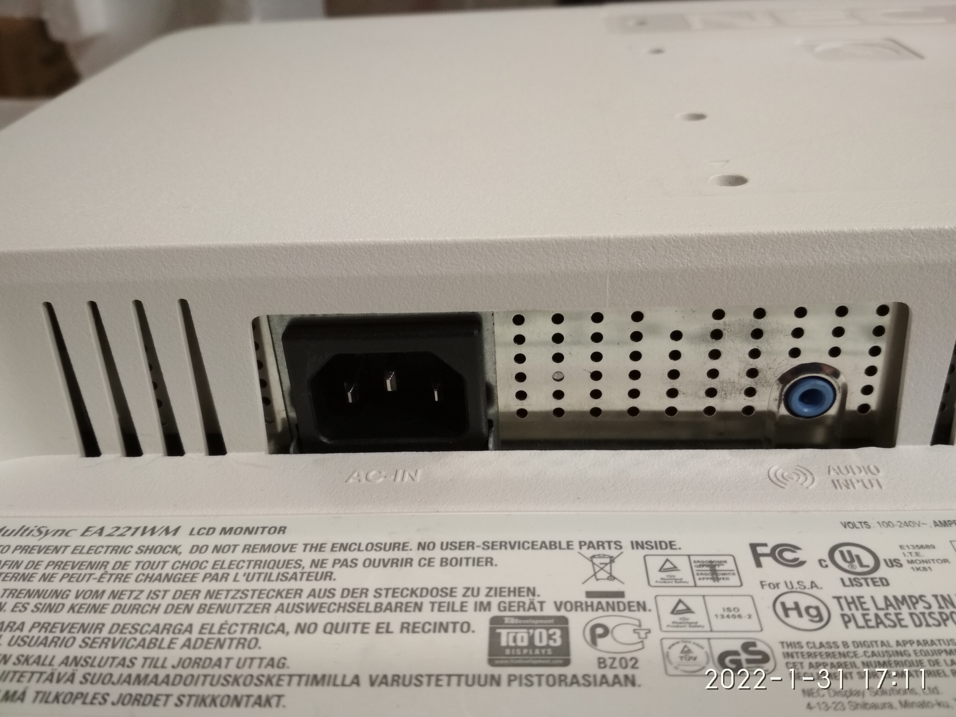 NEC EA221WM hibás monitor elvihető Bp. 17.-ből. Hibája: a panel csíkozott, sokszínű képet ad. Többi funkciója működik. Javíttatni próbáltam, de nem sikerült. Talpa már nincs meg.