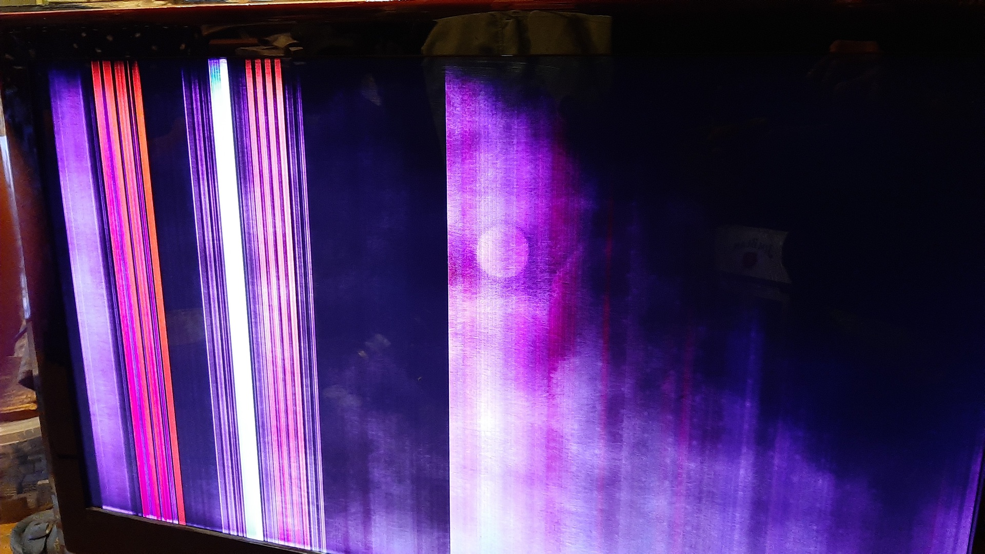 A lenti képből mi derül ki? Olvastam ugyan olyanról, hogy ez is csak t-con hiba, de én még világító karikát is látok benne, és a jobb felső sarok sötét. Bekapcsoláskor (mielőtt HDMI-t dugtam bele) még vízszintes csíkok is volta. Szerintem odavan az egész képernyő.
