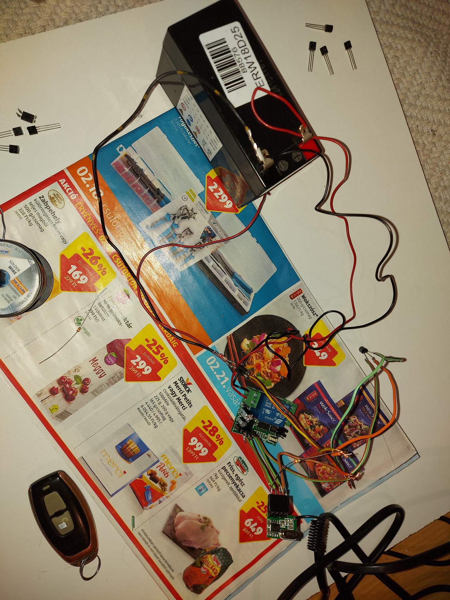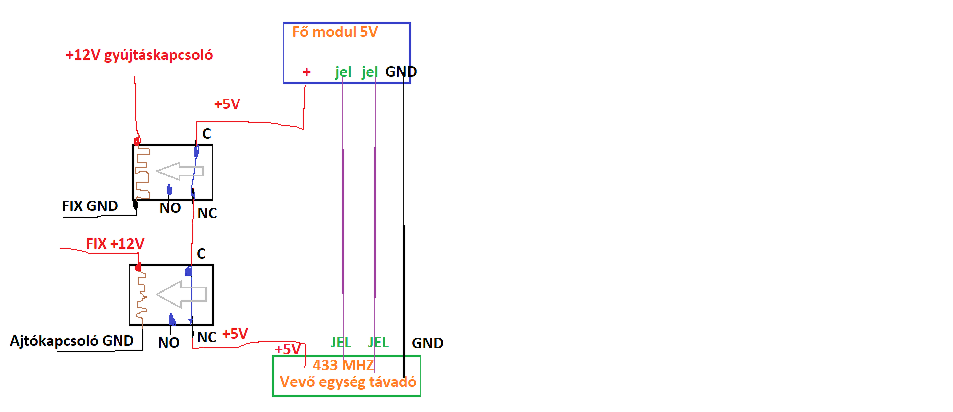 Van nekem egy ilyen rádió távirányítású 433Mhz-s relém. A relét úgy hívom hogy feláldozható. A rádió vevős részt kiforrasztottam, majd vezetékkel kipótoltam 4db vezeték van ,de ebből 2 ugyan az , mert mind két nyákon össze van kötve(jel), illetve a + és - ,a feszültség amit a rádió vevő modul kap 5V. Na itt akkor a +5V-os vezetéket elvágtam, azt akartam megtudni hogy üzemállapotban míg áram alatt van, le illetve vissza csatlakoztathatom e a vevőegységet úgy hogy ha visszakapcsolom akkor működik e, illetve ha lecsatolom akkor nincs e valami zavar. A válasz, az az hogy minden működik, úgy ahogy kell. kb 100 alkalommal teszteltem. A képen lévő részt szeretném majd kapcsolgatni, úgy hogy ha kap mondjuk pl a gyújtáskapcsolótól egy +ot akkor kapcsolja le a modult, és szintén le kellene kapcsolnia a modult akkor ha kap egy pl ajtókapcsoló negatívot, ezt úgy tudnám megvalósítani hogy 2db 5 lábú 5V-os relé, de se hely, se idegzetem nincs hallgatni a relék kattogását. Ahogy mondtad az az PC817 biztosan kelleni fog kb 2 db.