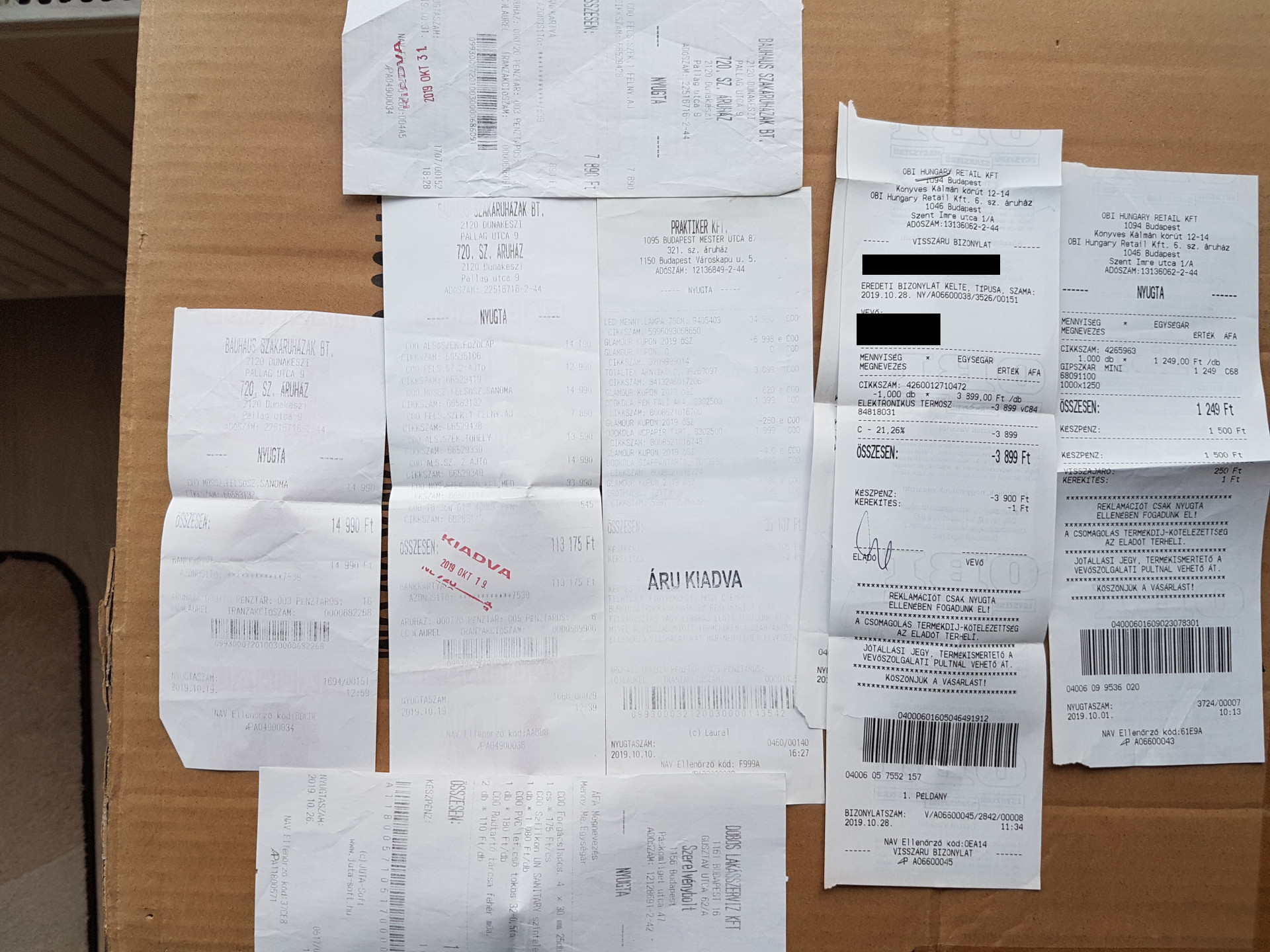 Néhány napja volt szó itt a hôpapíros blokkok eltarthatóságáról (autópálya-matrica, blokk-garanciaként, stb). Van akinek szerencséje van és a kocsijában is gyönyöruen megmarad, másnak meg nem. Ma pakolászáskor kezembe akadt kb. két évvel ezelôttrôl egy rakás elrakott blokk (költözés után hát ha kell alapon). Ideális körülmények, se hôhatás, se pára, egy dossziéban mind. Kivettem párat amik hôpapírosak (Bauhaus, Praktiker, OBI), íme: A Bauhausos mindegyike elhalványult (hetekkel eltérô idôpontúak), a Prakitkeres is, az OBI-s pedig patent maradt. Tehát nem a tároláson múlik, hanem a papíron.