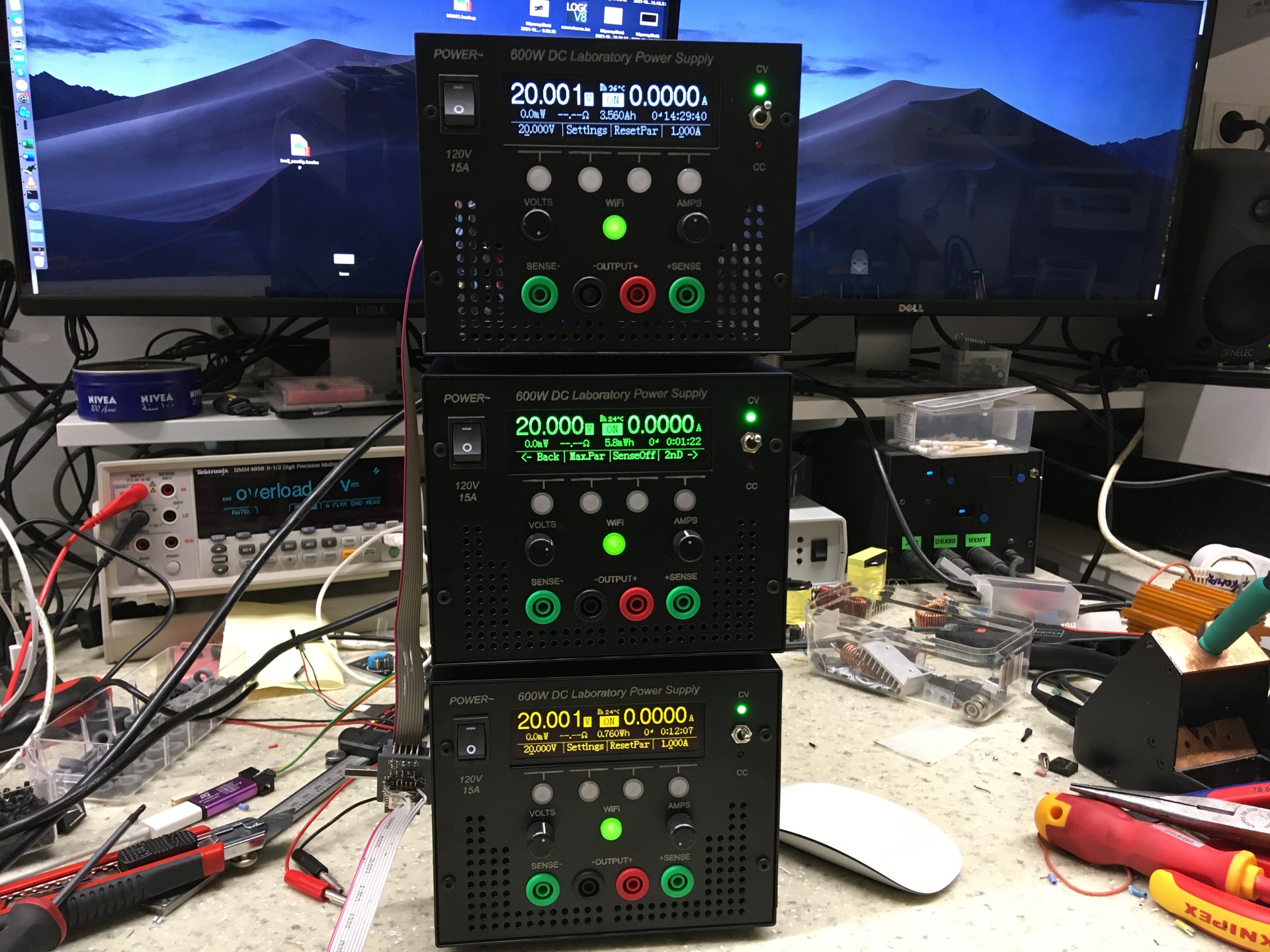 A videóban az látszik, hogy hogy szinkronizáltam a felsőhöz az alsó kettőt. (feszültég/áram állítás és a DC on/off van szinkronizálva.)