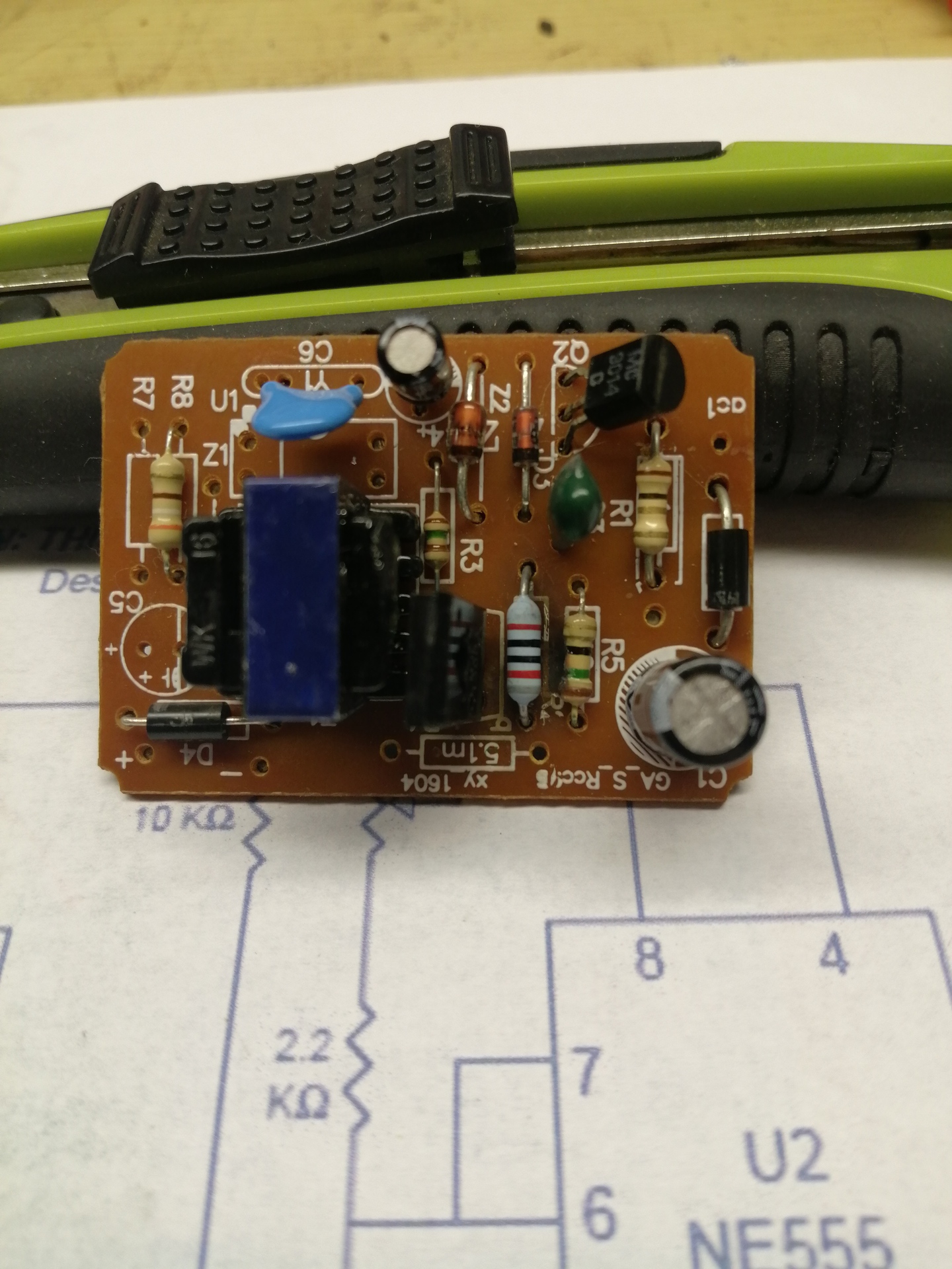 A diódád jónak tűnik, nem zárlatos. Az R8 390 Ohm az is jó, lásd a rajzot.