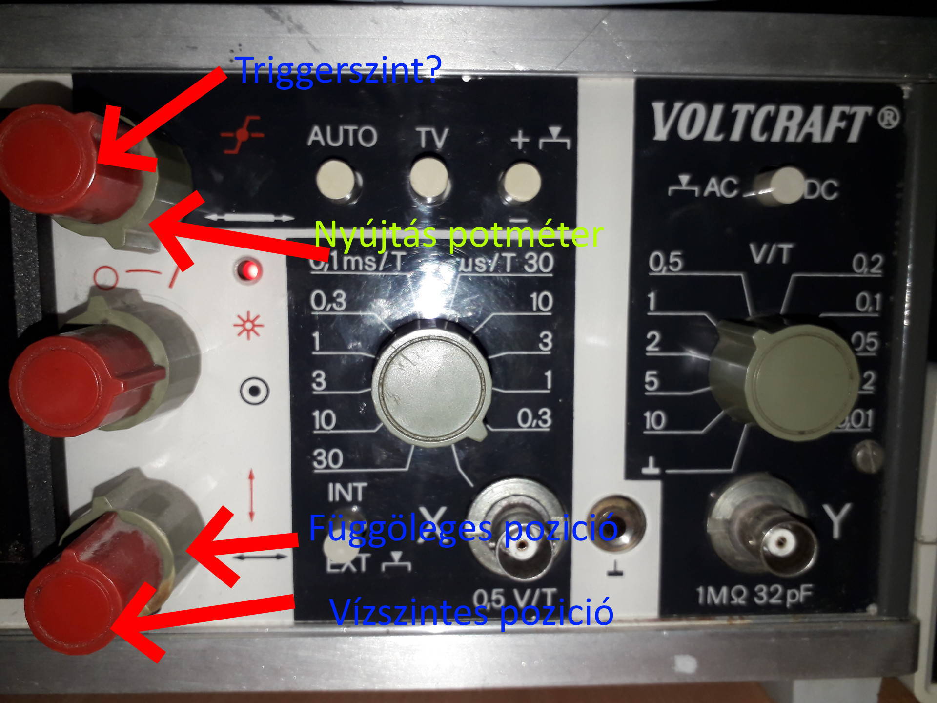 Igen a nyújtás be van kapcsolva, illetve maximumomra van a potméter tekerve. Középre kellene raknom? Mindig, amikor bekapcsolom a szkópot, akkor a fokozat kapcsolókat a GND állásba kapcsolom és középre igazítom a kis zöld pontot. Ebben a hozzászólásomban található képen a legfelső potméter második funkciója, (szürke peremű forgatógomb). Szintén ennek a potméternek a piros gombjával, pedig ( trigger jel) az állóképet állítja be a képernyőn.