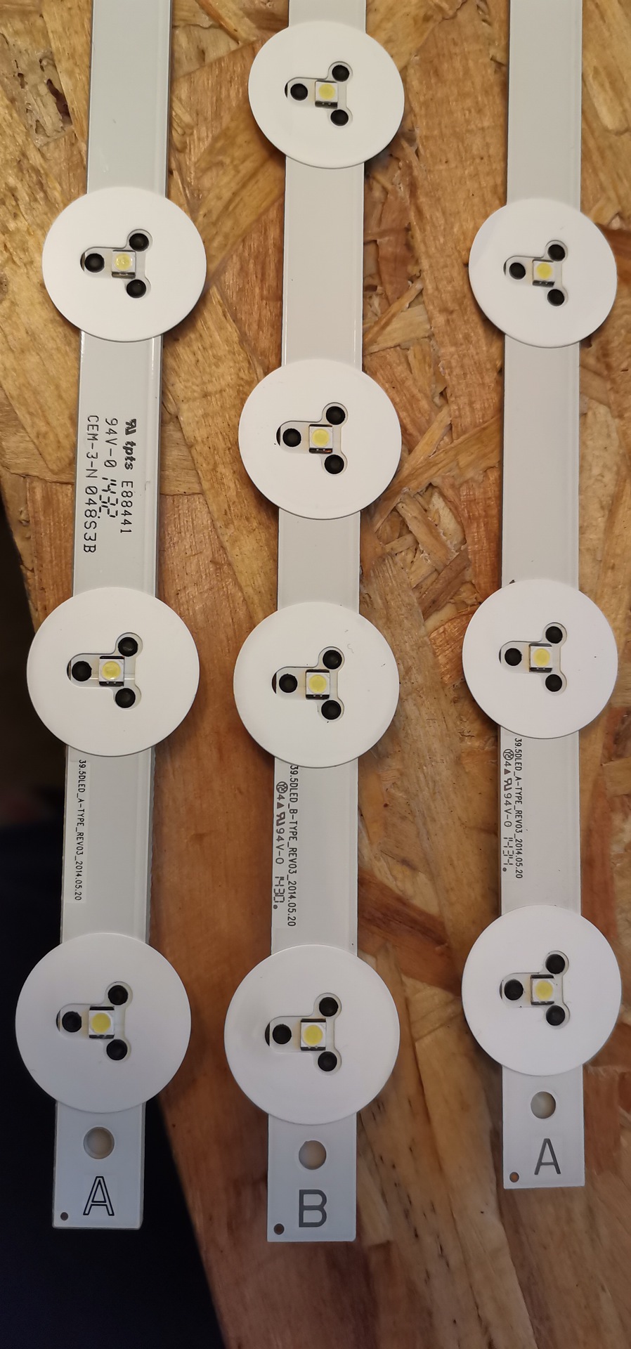 Sziasztok. A mult heti vestel led hibás tv vel küzdök. Kivettem nagynehezen a ledeket, de nem találom honnan lehetne rendelni újat. Tudnátok segíteni? Van benne 4db egyforma 7 ledes és 2 csatlakozós cem3n048s3b, és van 1 db 8 ledes 3 tűs csatlakozós jelzés nélküli. Hol lehet ilyet taláni? Esetleg kitben?