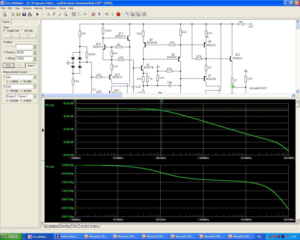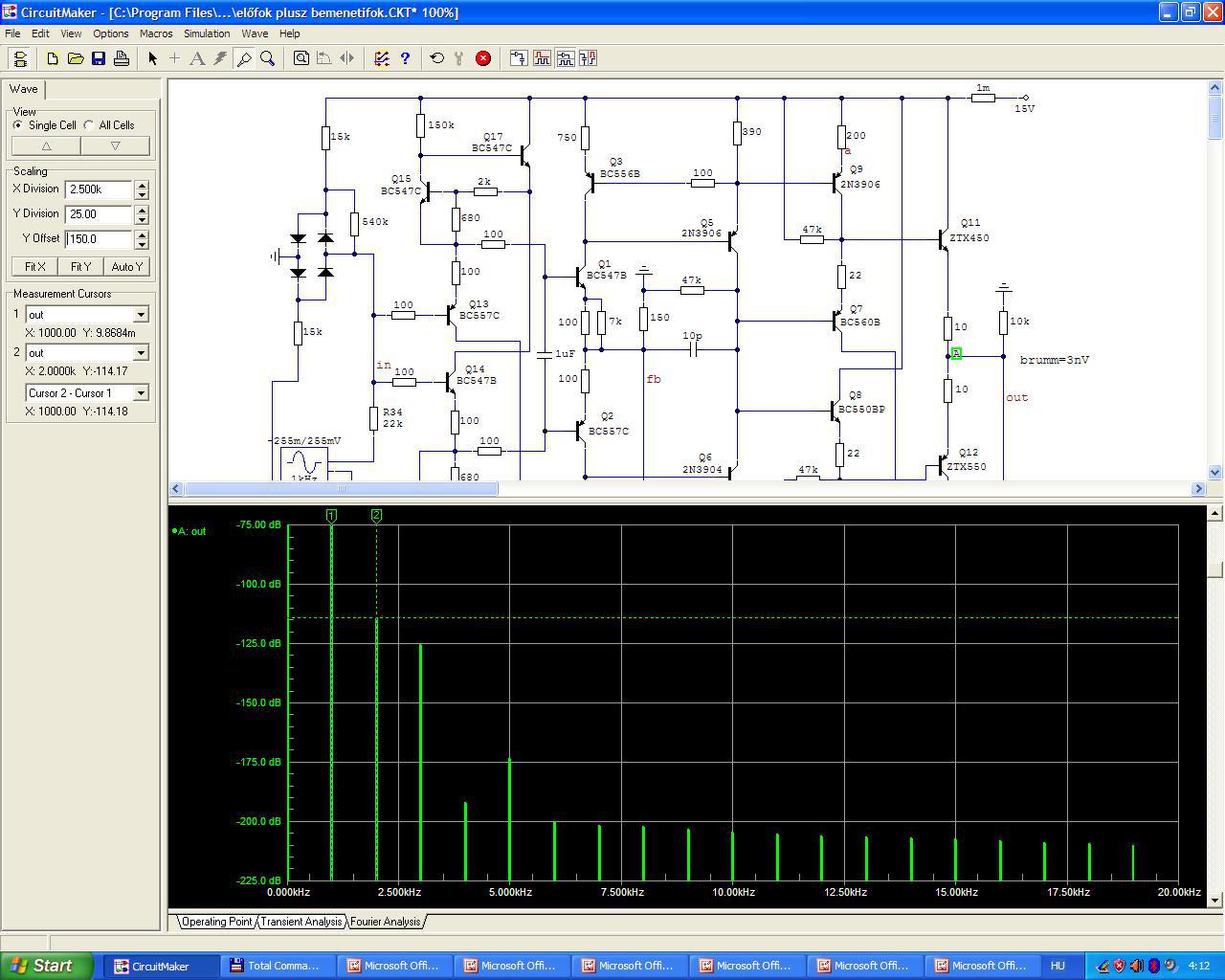 Sokat játszottam a maranztal. Átmodoltál benne ezt azt, ami aztán vagy jó vagy nem. Most úgy látom, hogy pl. a tranyót amit kihagytál belőle azt a tervezői nem véletlenül tették bele. Ha elkezdek játszani a bemenő és a kimenő jel nagyságával, meg a visszacsatolással akkor 1 nagyságrenddel jobb az eredeti verzió mint a V4-ed. Úgy általában, mert nagy kivezérlésen lehet hogy kettővel is de már nem emlékszem. Ez volt az egyik rajz amin gondolkodtam, a másik meg az az electrocompaniet féle ami le lett butítva kapcsolófetekkel valami baji féle akármire. Mert az a másik olyan amit még meg lehet csinálni nagyon jóra, persze csak szimulátorban, mert a valóságban ha nem 1 tokon belül vannak a difi erősítő tranyói akkor nem lesz jó. Meg a tripla darlington kimeneti fokozat annál is alap. Alapból én is azt vallom, hogy a műszaki paraméterek nem igazán számítanak, de jelen esetben és ennél a kapcsolásnál meg szerintem nagyon is. Általában ezért nem szokták megközelíteni sem az után építések a gyári hangját, na meg ugye a másik az alkatrész készlet. Elkezdtem nyákot is tervezni neki, de teljesen más koncepcióval mint a tiéd, nálam pl. alap dolog lesz az, hogy minden egyes ellenállás 2W-os méretű (mert olyanból léteznek akár nagyon jók is), és nem lesz benne trimmer semmilyen sem, az is 2W-os ellenállásokkal lesz kiváltva. Aztán majd meglátjuk.