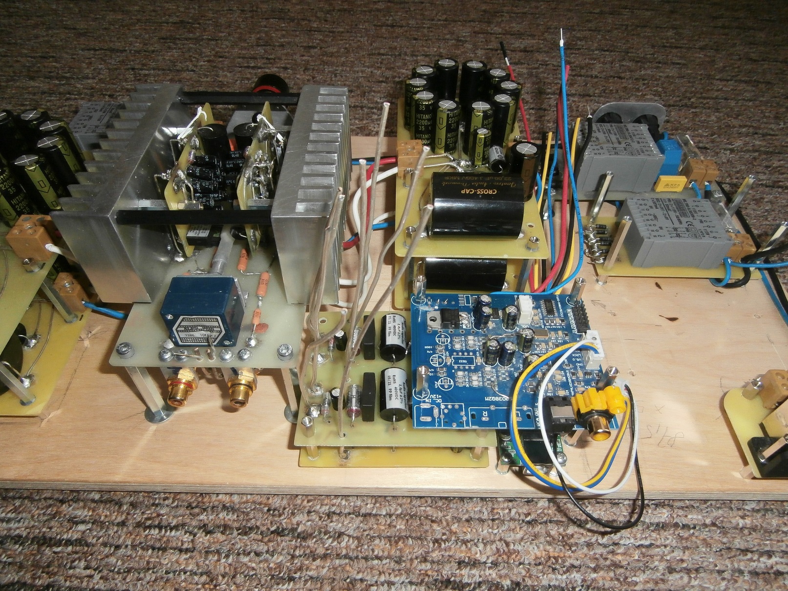Ha már ennyit dolgoztá ezen (láthatólag nem keveset), akkor mit keresnek azok a nyáktrafók ebben a gondolom hifinek szánt cuccban? Nem hiszem, hogy annál rosszabb megoldást tehettél volna bele. Ezek a Makrai trafók akkorát szórnak, hogy még a szomszéd tv-je is fejre áll tőle...