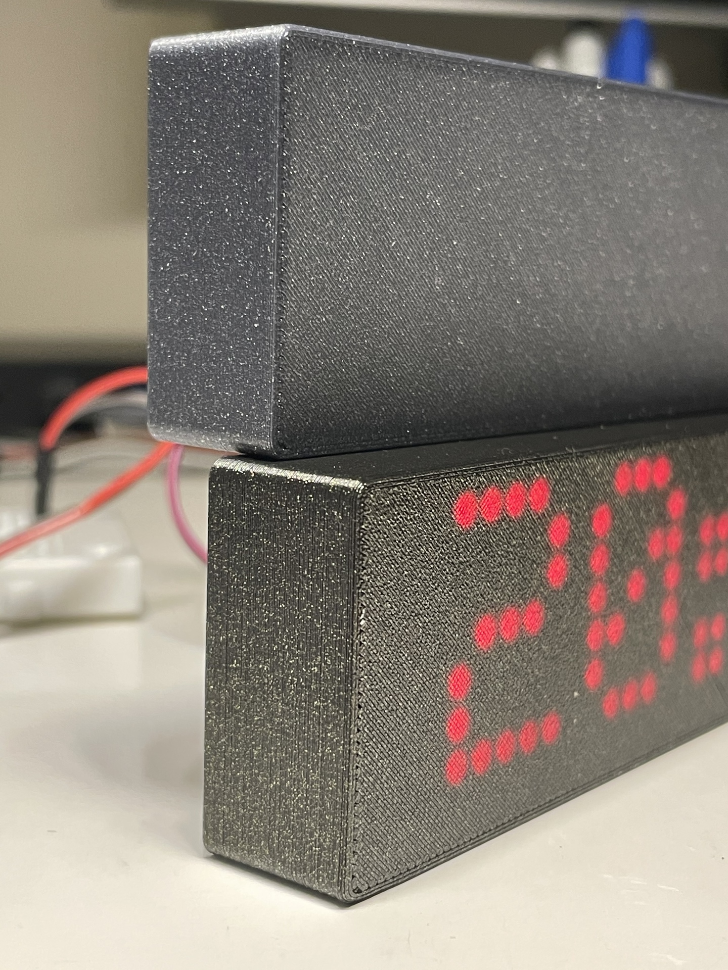 Teszek fel par kepet, ami erdekes lehet: Ahol dot-matrix kijelzot latsz, ott az elolap homogen(nincsenek 'lyukak'), 0,2mm vastag, a negy oldalfal pedig tizedmillimeter pontossaggal nyomtatva, a kijelzo panel siman 'bepattan' es nem esik ki, stabilan tart.
