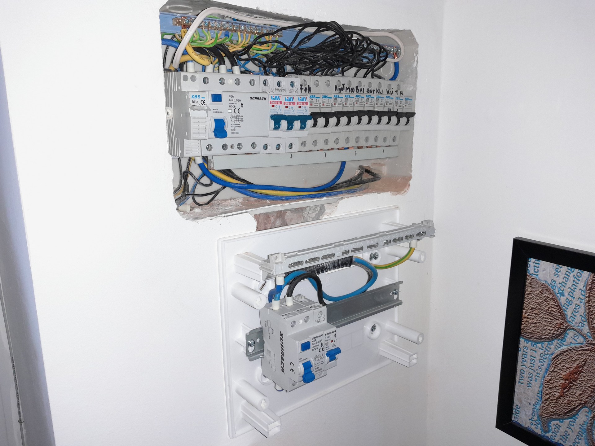 Már azért is, mert ha a felső dobozt feszültségmentesíted, csak úgy lesz az, hogy az alsót is le kell kapcsoljad az áthaladó vezeték miatt. |
