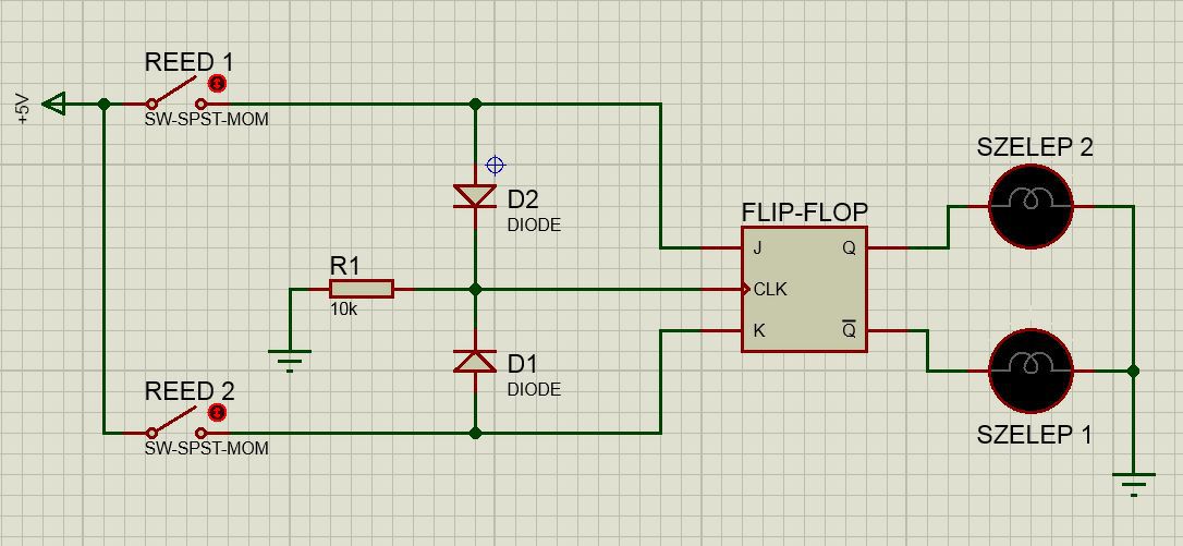 Van egy munkahenger aminek a két végén egy- egy alaphelyzetben nyitott reed relé van. Természezesen a munkahenger dugattyújában mágnes van beépítve. A munkagengert egy 5/2-es elektromágneses pneumatikus szelep vezérli, melynek mindkét végén egy egy 12V-os elektromágnes végzi az irányváltást. Az igazi gondom az, hogy amikor a dugattyú a reed-hez ér, akkor a reed kapcsolóról két imulzus (egy záró és egy nyitó) érkezik. Oylan áramkörre lenne szükségem ami folyamatos dugattyú működést biztosítana. (dugattyú ki-be, ki-be....) Segítségeteket előre is köszönöm