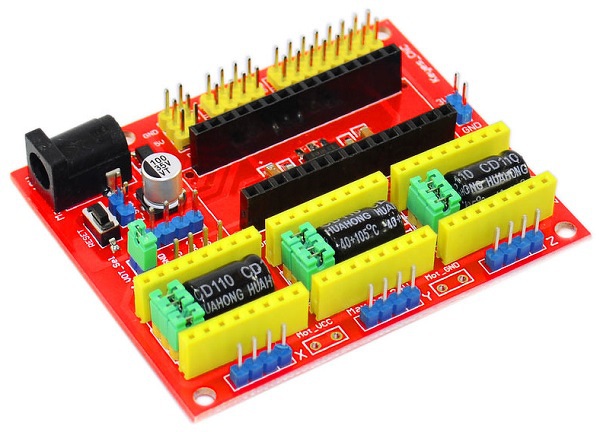 Nem használok ilyen schildet , de a mellékelt kép szerint , itt is az ARDUINO D11 kimeneten jön ki a PWM jel , ami a schild V4 en ugyan az mint a CNC SCHIELD V3 kioosztása, vagyis a Z+ láb. Csak GRBL 1.1 feletti verzióval működik helyesen.