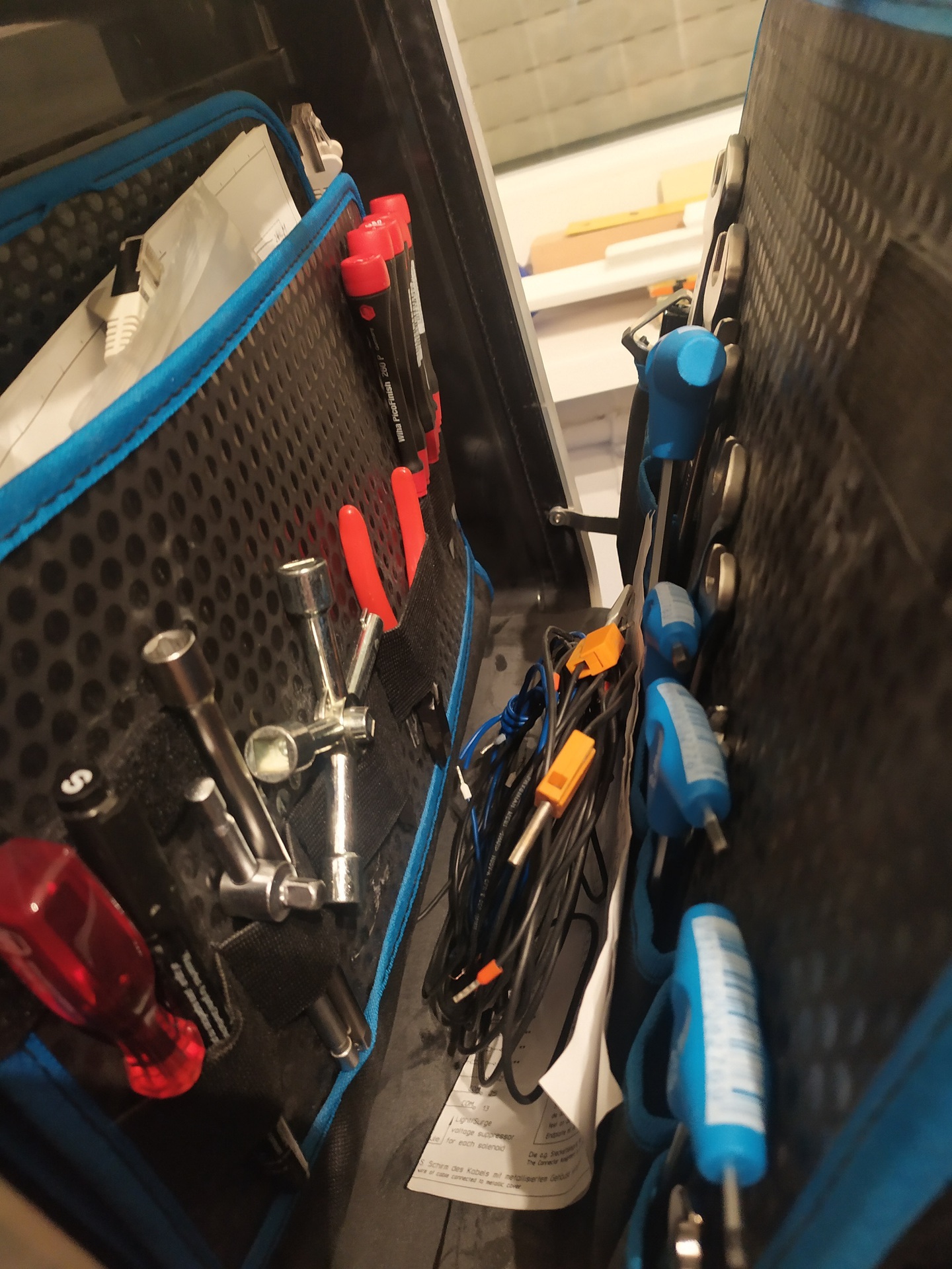 - A perem miatt lecsukott állapotában az alsó tábláról is elég nehéz kiszedni a hosszabb dolgokat (pl vízpumpa fogó, imbusz készlet)