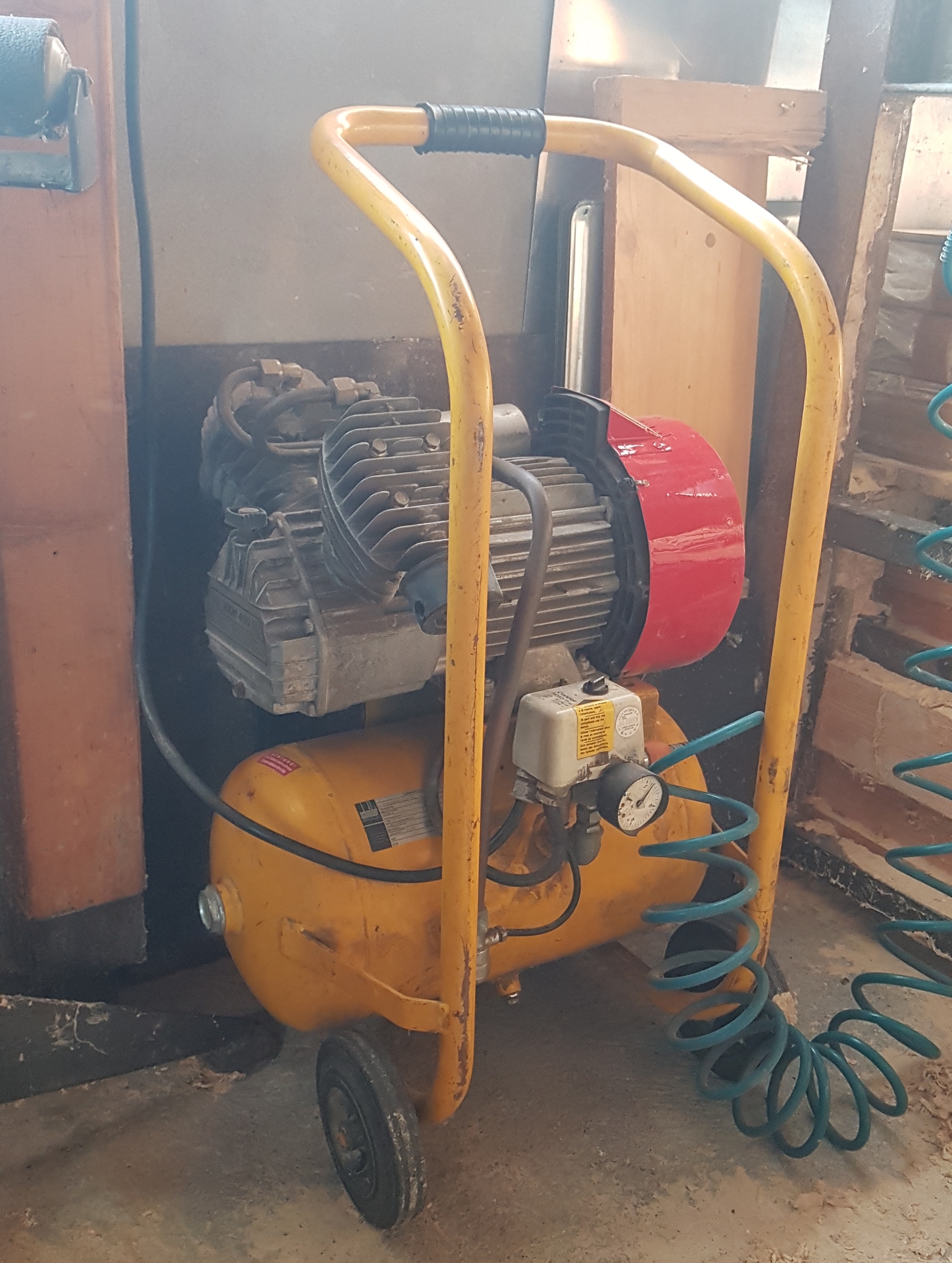 Cseréltem a napokban egy kompresszort. Volt már korábban is a "pince-műhelyemben", ezért ezt kitelepítettem a faipari műhelybe (eleve ide terveztem).