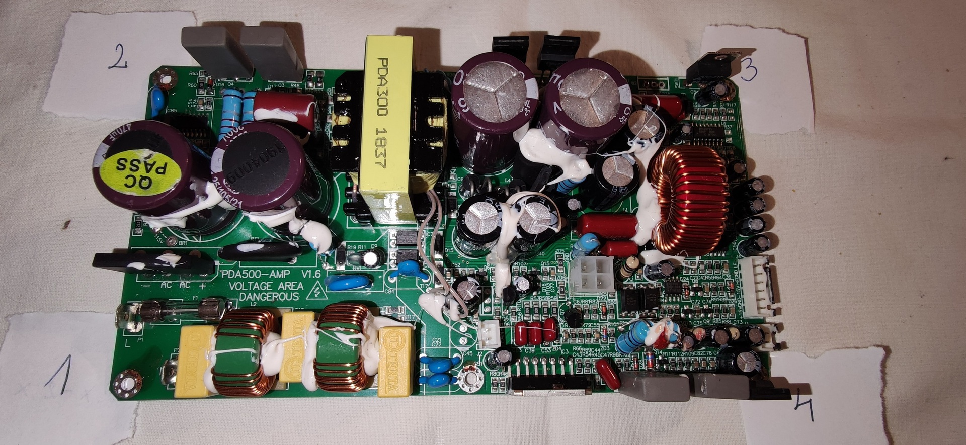 Van egy ilyen erősítő, (PDA500-AMP) más feliratot nem találni rajta. Nem találok hozzá rajzot. Ha van hibás dióda meg kondi rajta, gondolom így nehéz be azonosítani, hogy milyet vegyek helyette. Van rajta a meghajtó IC IR2156S és körülötte a diódák kondik milyenek lehetnek? Van egy rajz ez alapján próbálok boldogulni, cserélhetem ilyenekre mint a rajzon vannak? Az SMD ellenállásokat figyelve az alaplapon mások vannak mint ezen a rajzon. Válaszokat köszönöm!