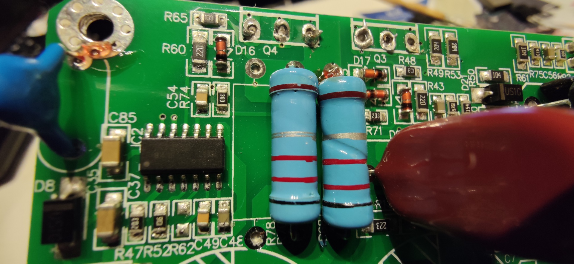 Cserélt alkatrészek: U1: tl072 U2: lm393 U3: lm311 U4: IR21844s Q3: mmbt5401 Q5: mmbt5551 Q7:mmbt5401