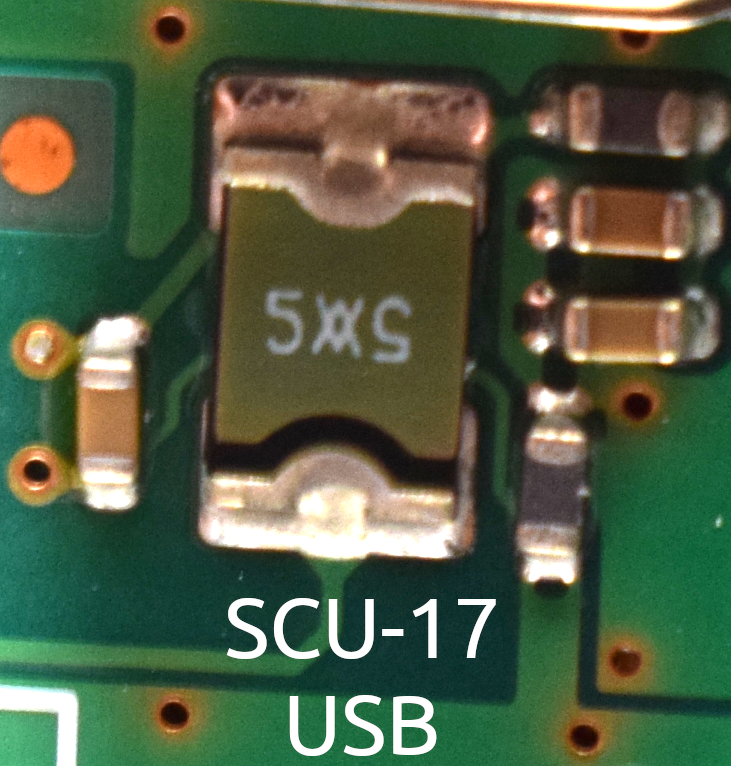 SCU-17 ( számítógép - adóvevő illesztő ) USB csatlakozója közelében van.