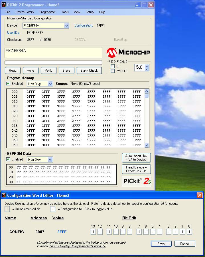 Habár az égető, ugyan beégeti a szoftvert, de aztán a PIC-ben nem fut. A problémám, hogy az MPlab-ban nem találok ilyen menüpontot, így nem tudom azt, hogy hogyan kell exportálni úgy ezt a hex fájlt, hogy be tudjam majd állítani a konfigurációs biteket is. Hogyan tudnám a konfigurációs biteket beállítani?
