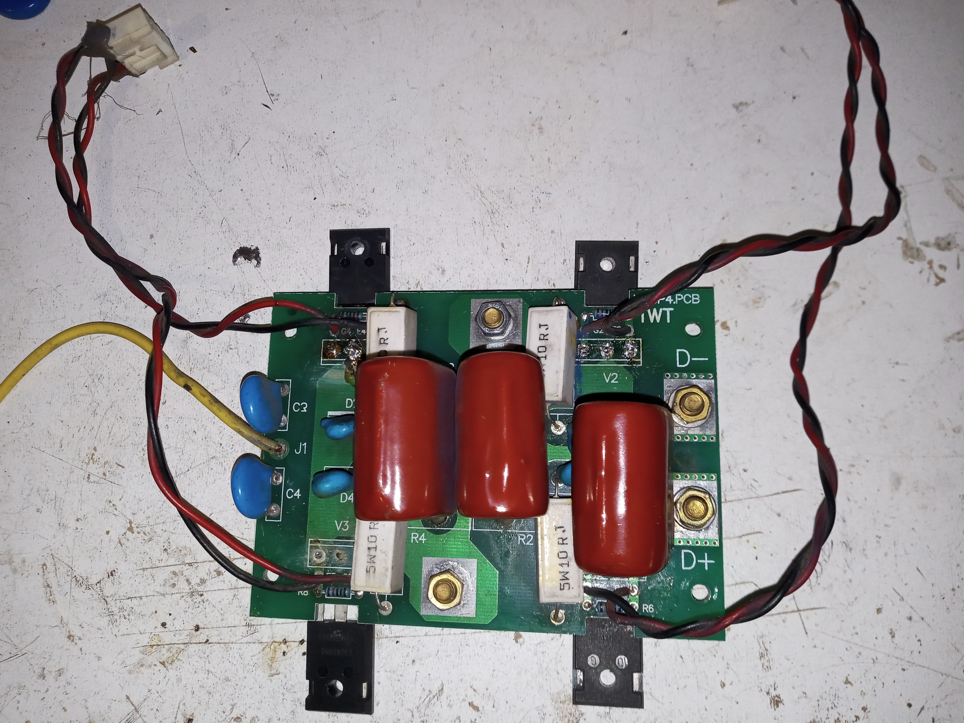 A kondenzátor kapacitását majd megnézem. Nem emlékszem fejből. Akkorát vettem, amekkorát szoktak tenni a gyári CO hegesztőkbe.