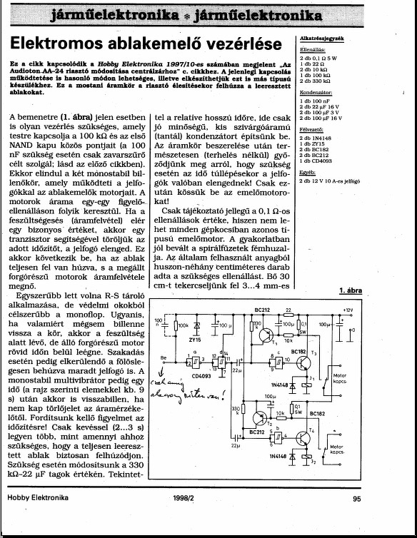 Egy kis segítséget kérnék elektromos ablak felhúzásához.A donor egy 95 Opel Astra F,beszereltem a 2 első ajtóba elektromos ablakokat amik komfortelektronikások és tudják az automata fel illetve lehúzást betanítás után plusz van rajtuk egy külön szál amik képesek csak felhúzni az ablakokat mínusz jelre.A problémám a következő ,a riasztom tudja az elektromos ablak felhúzását vezérelni de túl későn adja ki a jelet a relémnek amikkel összekapcsoltam az ablak felhúzás kábeleit és ezért az ablakfelhúzás pillanatában a riasztó riaszt,a másik probléma pedig az ha ezt egyszer megcsináltam utána elfelejtődik a komfort funkció vagyis nem működnek az ablakok automatán csak akkor ha kiveszem a táp biztosítékot és újra tanítom de ez is csak addig a pontig amíg nem riasztom be újra az autót.Szeretnék egy kapcsolási rajzot kérni a hozzáértőktől ami tudja azt hogy a központi zár impulzusára kapcsoljon és felváltva tudja húzni ablakokat fel de gondolom ez a bonyolultabb mert oda kéne egy gyújtás figyelő kör is hogy gyújtás esetén ne működjön vagy a riasztó ablakfelhúzás jelére működjön de akkor kéne bele egy plusz relé ami szét bírja kapcsolni a sziréna kábelét hogy ne szóljon a sziréna.Ha lehetséges akkor a működési időt lehessen állítani potival is.Tudom hogy kaphatóak ablakfelhúzó modulok is de az azért nem tetszik mert újra kell vezetékelni a teljes autót és el kéne vágni a gyári kábeleket is és azt nem szeretném.Köszönöm előre is. Ui:Az elektromos ablakokat így kötöttem be Bővebben: Link