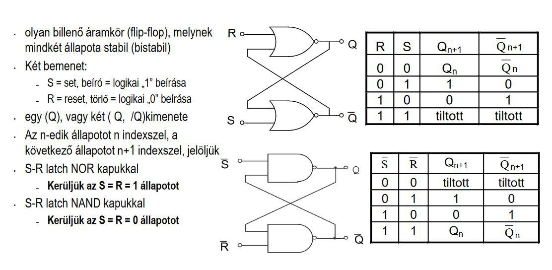 SR tároló néven keresd. Két NAND vagy NOR kapu elég hozzá.