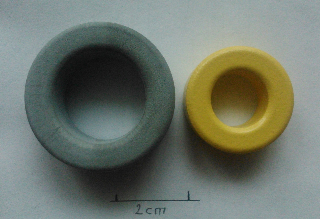 Hello. Az lenne a kérdésem, hogy a képen látható tekercs magok közül melyik lehet ferrit anyagú? Hogy lehet megállapítani, bármilyen típusjelzés nélkül?