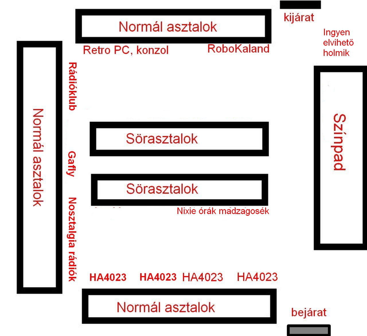 Tehát: - Gafly - Ha4023 +1 - Jani1987 + 1 - keszeg01+1 - Madzagos +1 - Szikorapéter +1 Jelentkezni az utolsó pillanatig lehet még és ahogy már megszoktuk, sokan jönnek a HE fórumon kívülről is, tavaly közel 130 látogatónk volt. A tavalyihoz hasonló teremberendezés lesz. A fix helyek kb. így néznek ki egyelőre: