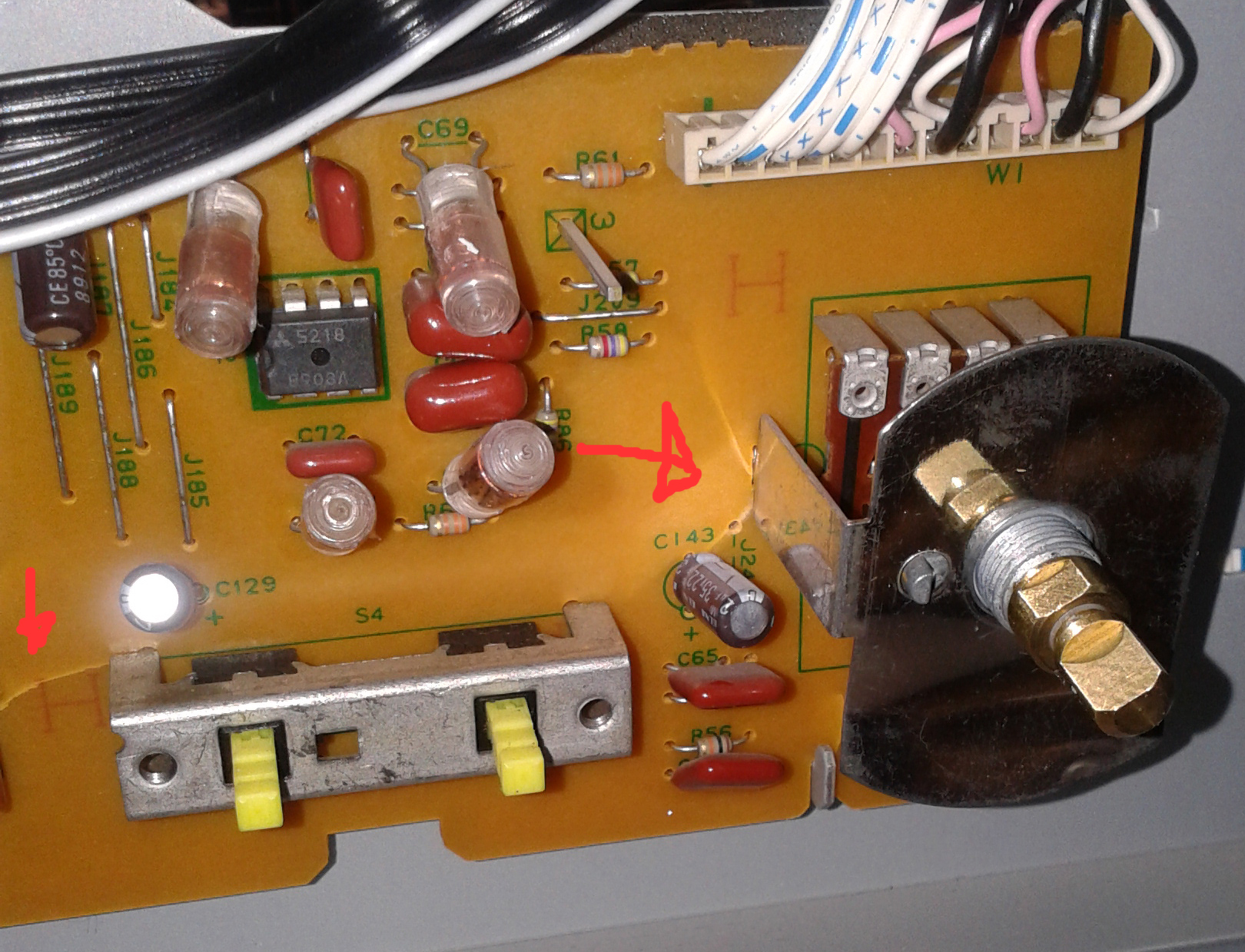 Eztán a törött másik, 6 kivezetése hangszín potit észleltem már csak töröttnek. A táp és plusz 5 db egyéb huzal összekötés van még ezen a nyákon a sztereó jel be és kimenete mellett. Aki ezt megcsinálná, azt fejbelőném, hogy ne szenvedjen, emberség is van a világon.