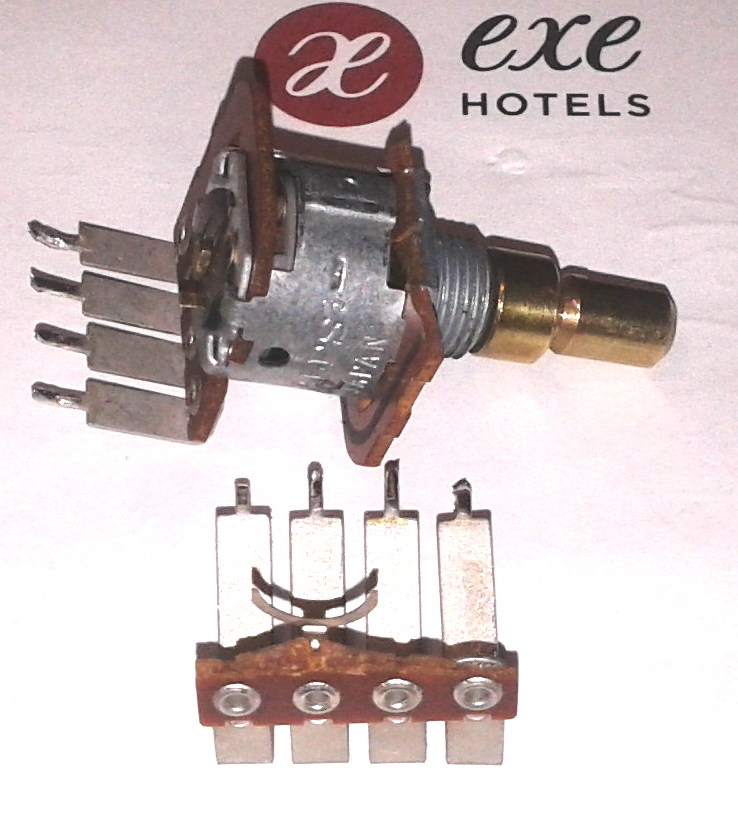 A hangerő poti 2x100k középleágazással, na az is eltört. Azt már nem lehet megjavítani.