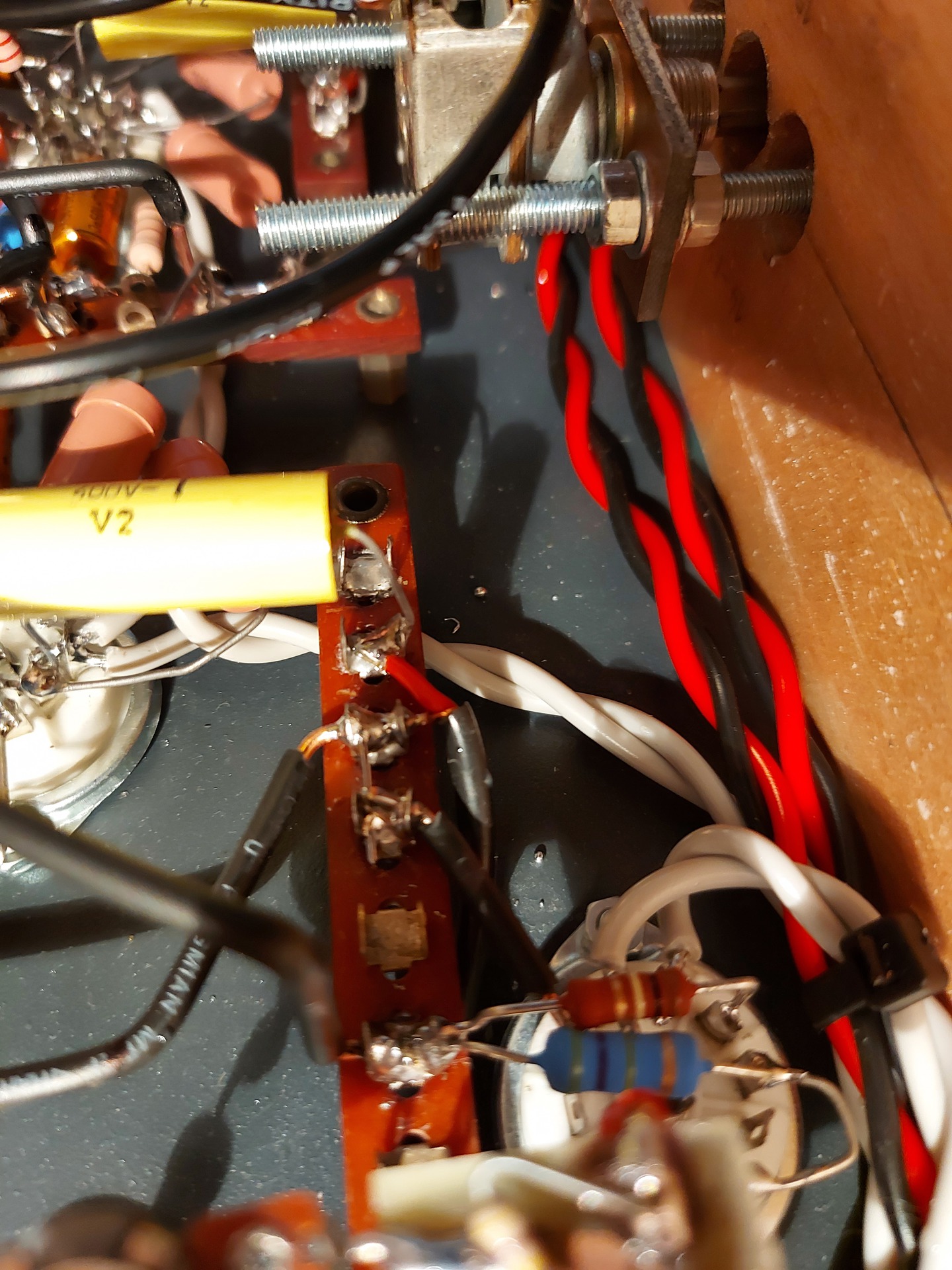 Összeraktam az erősítőt (megkapta a keretét) így beszereltem egy 2x47K stereo potit amivel már korábban kipróbáltam és tökéletesen működött. Most viszont a potit beszereltem és alatta kellett elvezetnem ( képen sodrott piros-fekete kábelek) a hálózati 230V-ot amit kapcsolok... kb: 2-3cm a távolsága a potinak a kábelektől.. A próbléma az hogy amikor a potit 0ról elkezdem tekerni akkor előjön egy 50hz-es hang (nem nagyon hangosan de lehet hallani) és ahogy tekerem a potit a közepe felé úgy erősödik fel a hang, majd amikor elhagyom a poti közepét akkor meg vissza megy 0rá vagyis nem hallani... Tehát amikor teljesen levan halkítva az erősítő (a poti koppanásig van tekerve) akkor csendben van, és ha teljesen maxra van hangosítva szintén koppanásig akkor is csendben van. A kettő oldal között gerjedéshez hasonló 50hz-es hangot hallani.
