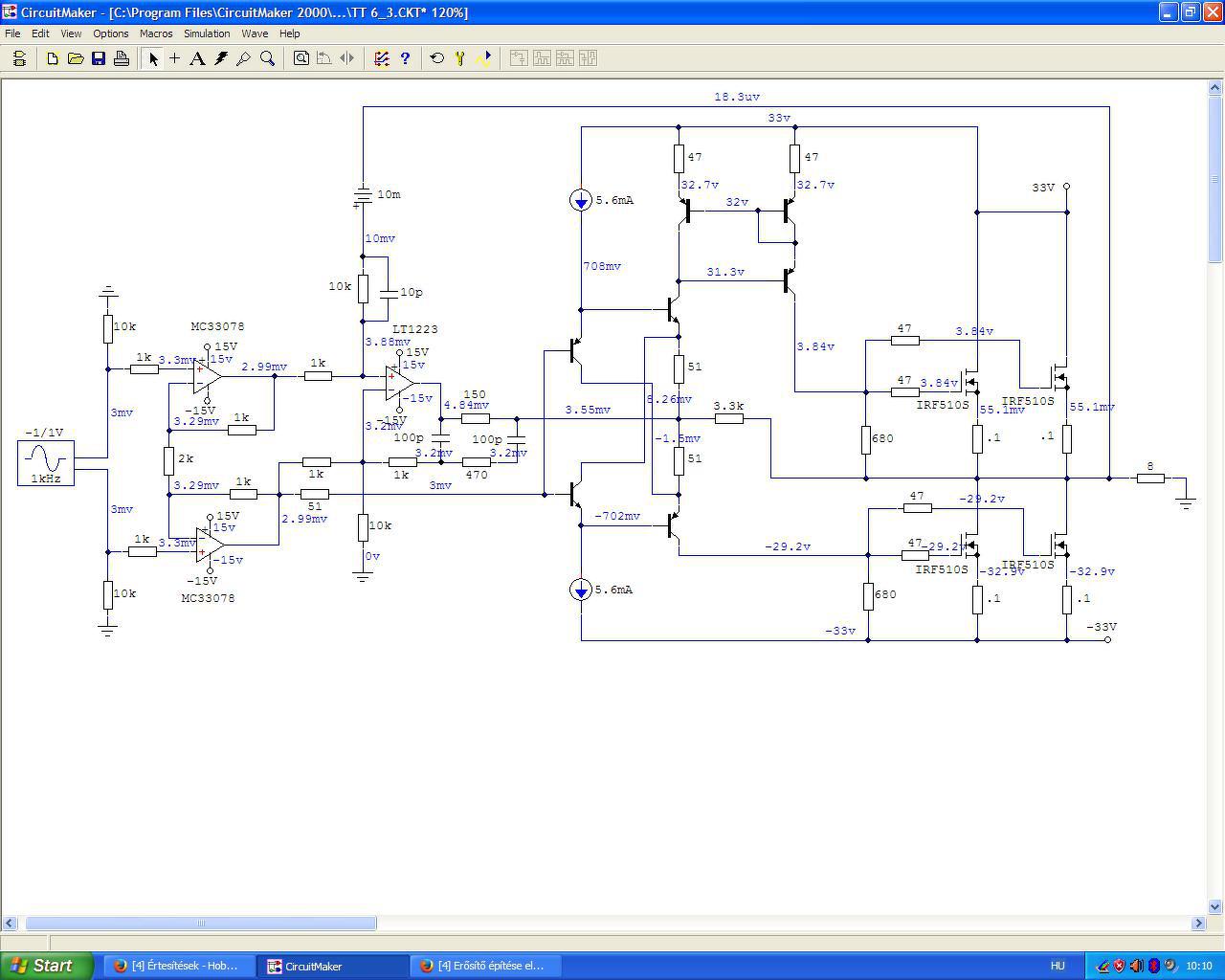 Tehát rajzoltam egy darab kétfokozatú erősítőt és rögtön meg is dupláztam.