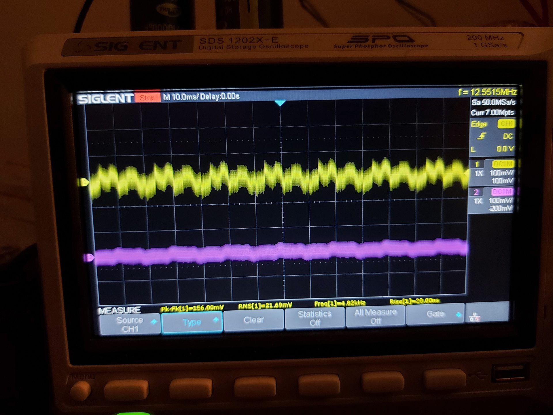 EL34 párba válogatott csövek)Anód: 302V Katód: 24-24.1V Pcl86: (jobb-bal oldal) Trióda anód: 137-130V Trióda katód: 0.834-0.830V Pentóda anód: 242-244V Pentóda katód: 5.4-6V A hálózati trafóra 310V 300mA van írva, ebből 160mA-t használok ki. A kimenőkről nem sok adatom van: 3.5Kohm/ 4-8ohmmal de úgy hogy 2db 4ohmos tekercs van. Korábban rávezettem váltóáramot és megnéztem melyik lenne a 4 és a 8, de 2 külön álló tekercse van amiről ugyanannyi fesz jött le, szóval jelenleg sorba van kötve a kettő az a 8 és a felénél a 4. továbbá írták hogy 20-24000Hz-ig visz át és 20W teljesítményre képes. Csatoltam egy képet, mit látok a kimeneten ha csak bevan dugva a telefonba. Sárga a jobb, a lila a bal oldal. A hozzászólás módosítva: Jún 6, 2022