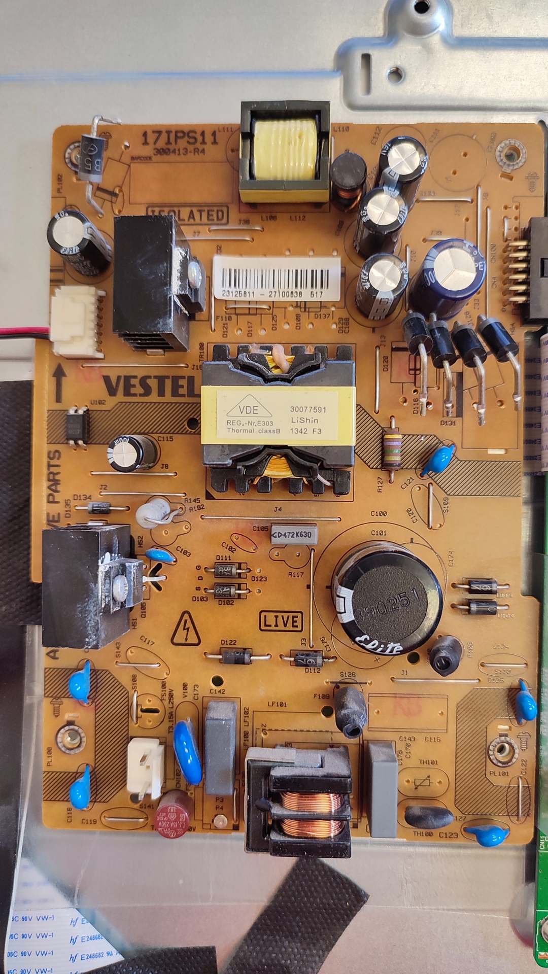 Sziasztok. Kaptam javításra egy Orava márkájú TV-t, ami Vestel. Adatok a képeken, de a tápja egy 17IPS11 R4, képért pedig a 17M82S felel. Nincs háttérvilágitás. Led háttérvilágitás cserélve újra. A hiba ott van hogy a tápegység csak 30 voltot ad, a kb 60 helyett. Bekapcsoláskor 7-et, kikapcsoláskor 13-at pislog a piros led. Az LCD működik, rávilágitva látni. A kiforrasztott diódák rendben vannak. Firmwaret tettem rá másikat, azzal sem megy. Előre is köszönöm a segitséget.