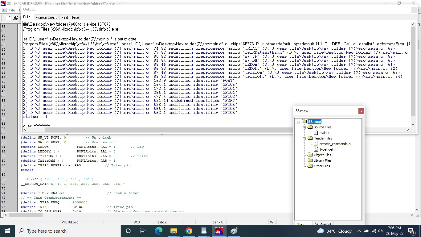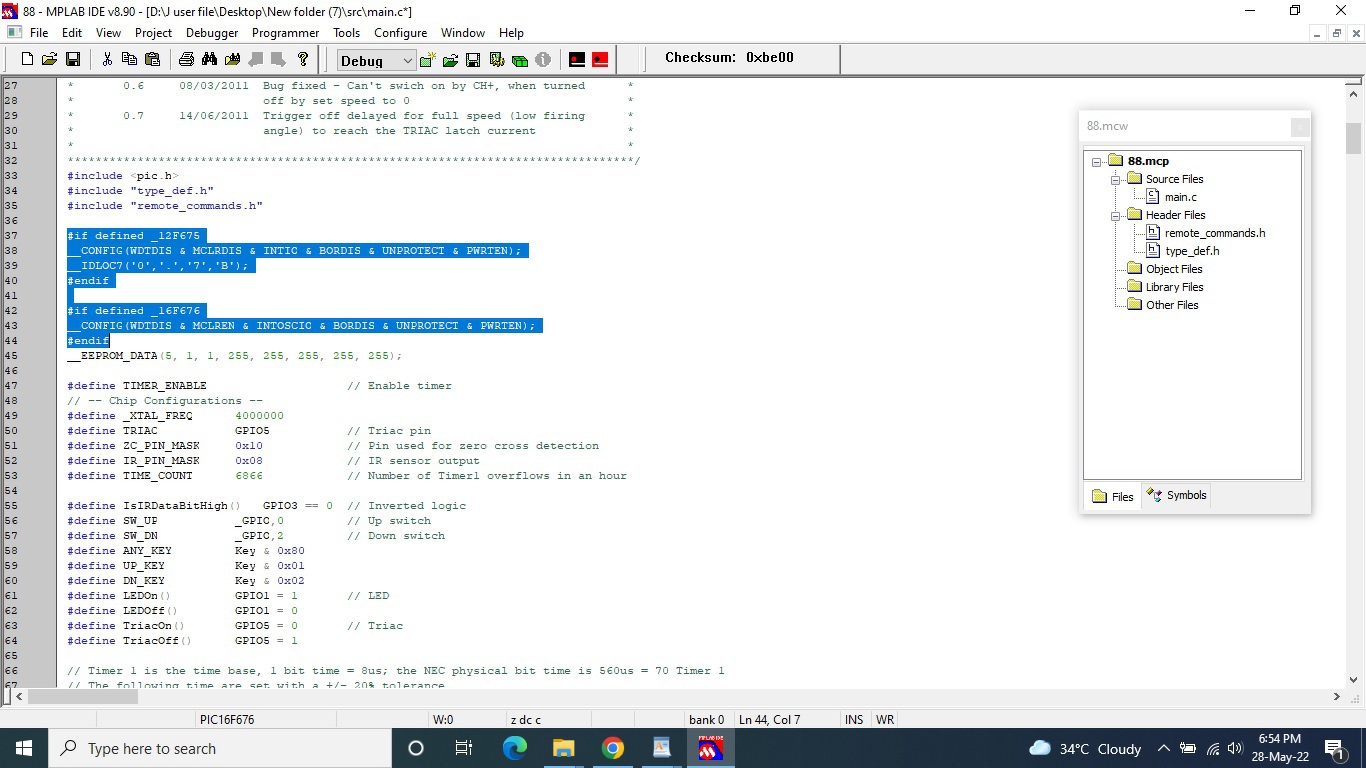 Hi friends, I NEED YOUR HELP, I have fan controller circuit with diagram and codes using microcontroller PIC12F675, circuit works successfully on hardware,now I want to use PIC16F676 inplace of PIC12F675 and need to changes in codes for PIC16F676, schematic and source codes files attached here: