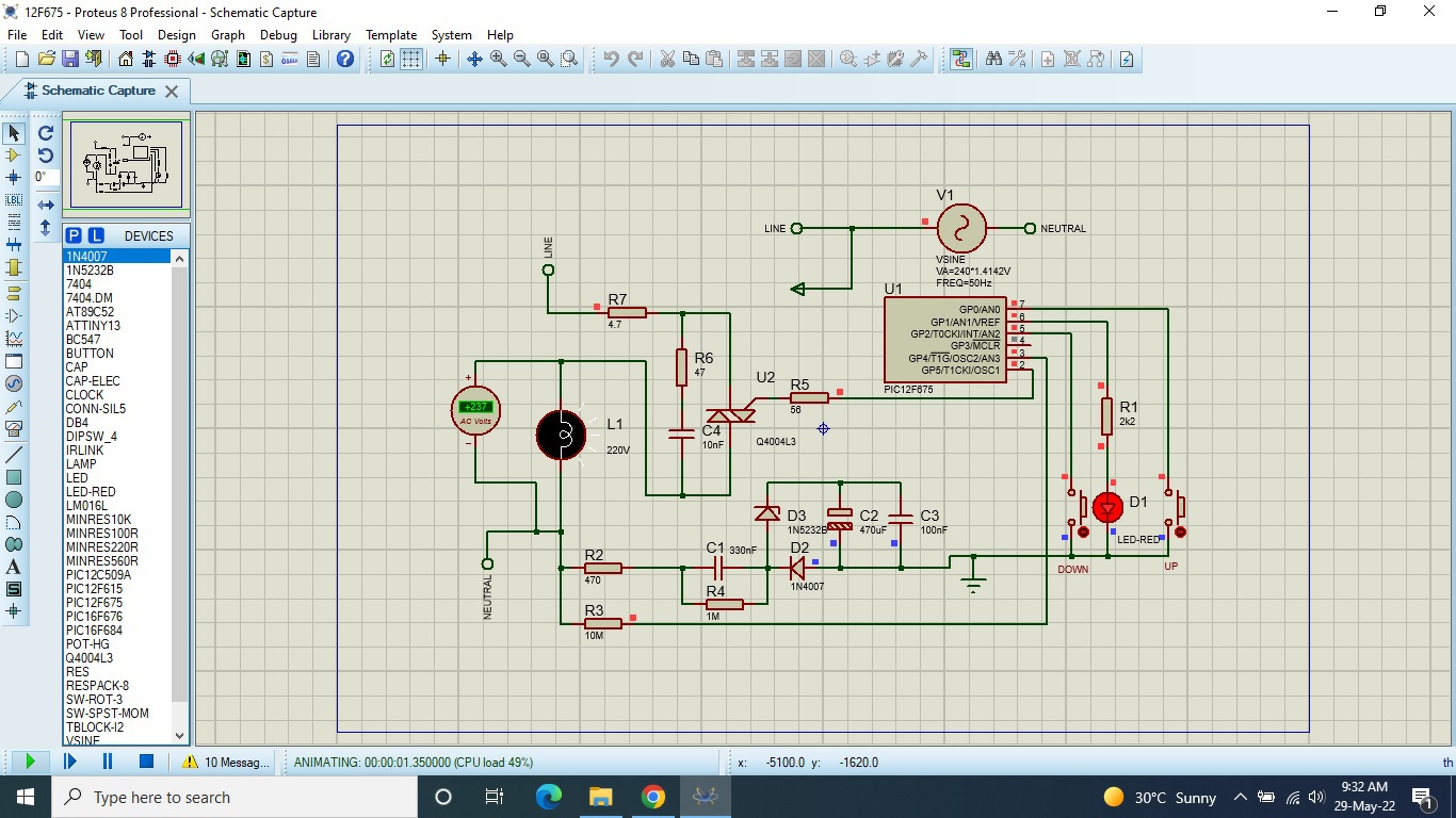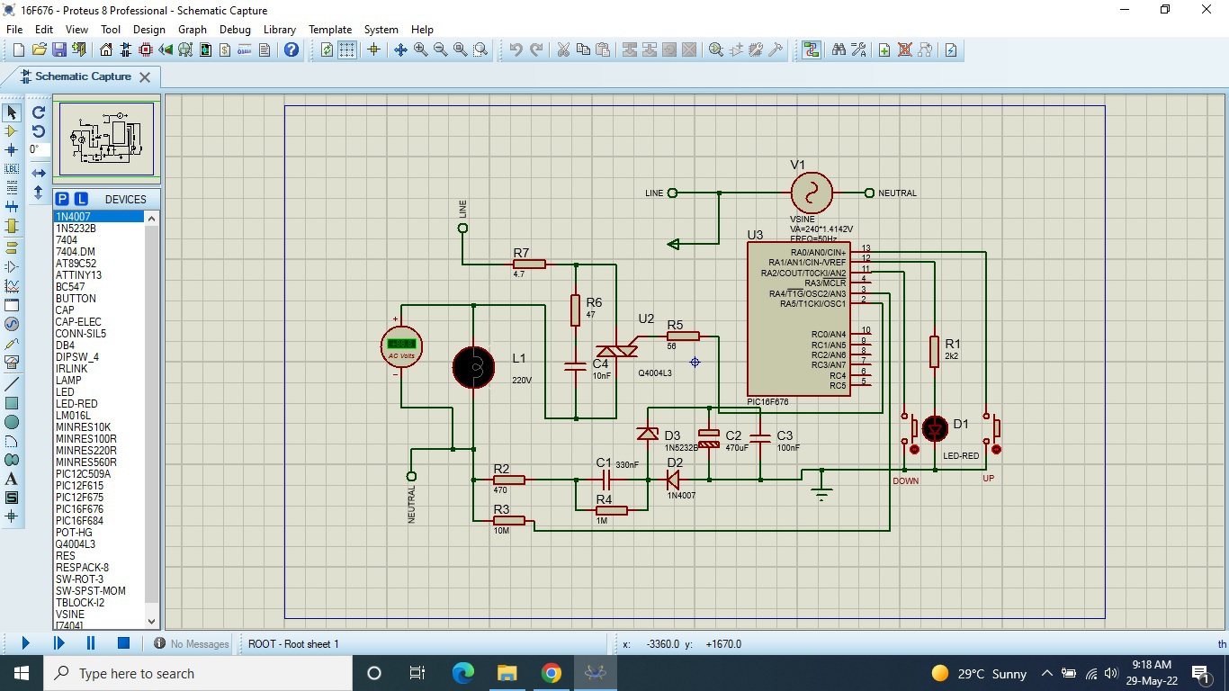 Dear sir, I simulate the circuit with 16f676 successfully in proteus,