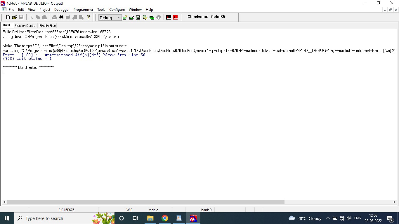 Thank you very much Mr. Hp41C and Mr. pipi for your support, I compiled the code successfully as you define, but I faced a problem ,I simulate the circuit in proteus of 12f675 with previous code successfully but the circuit with 16f676 with new genrated code not simulate in proteus,both proteus files,screen shot and hex attached here ;