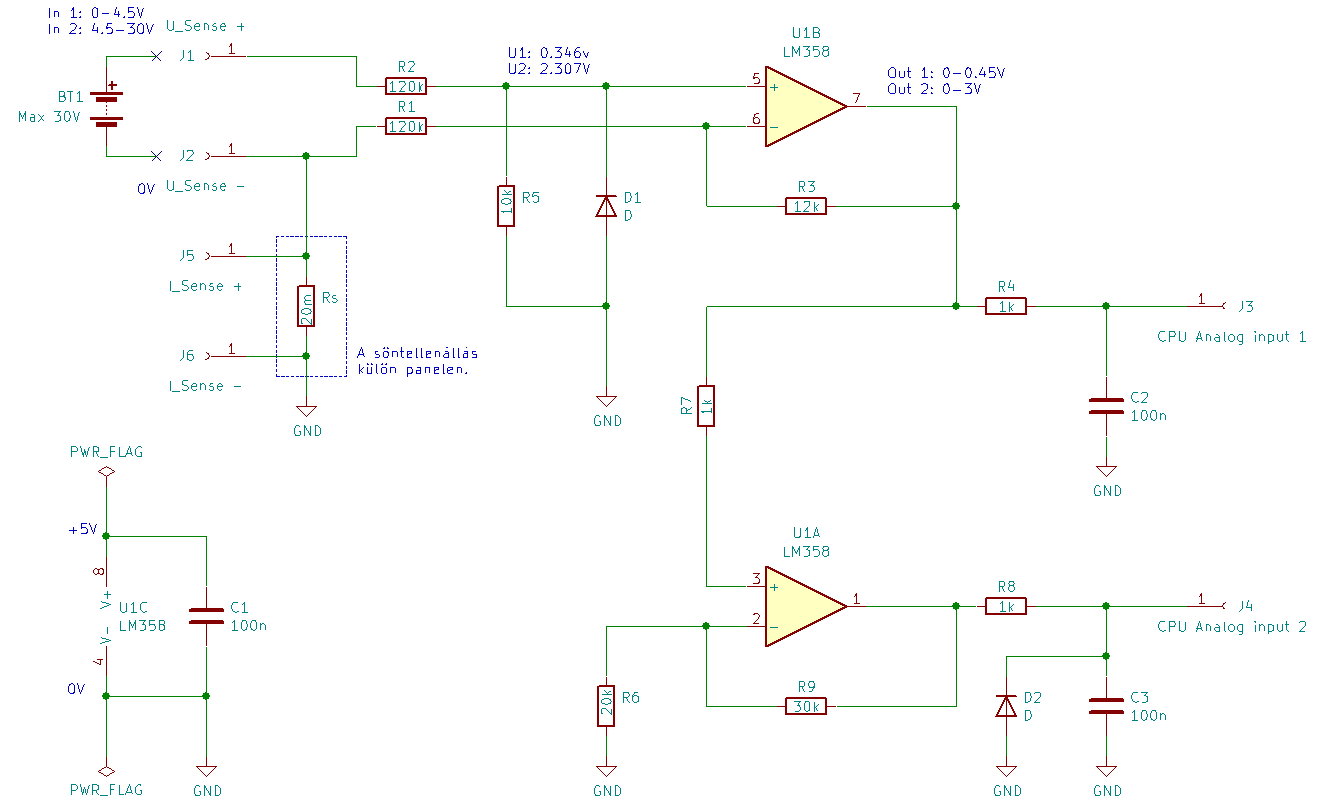 Az árammérő rész még ennél is bonyolultabb, 2db LM358 és 1 CD4053 analóg kapcsoló.