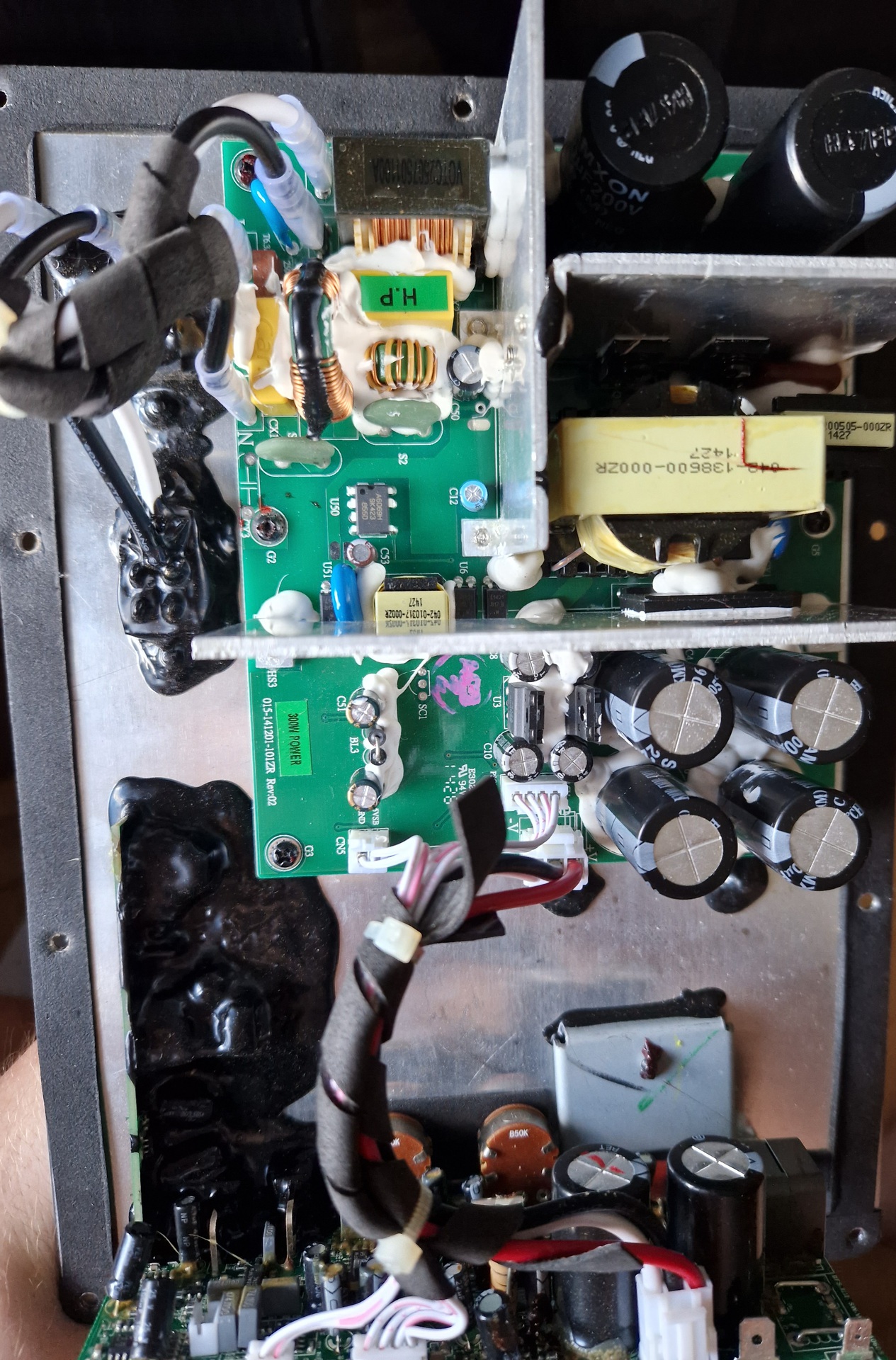 Előfordulhat, hogy a kapcsitáp miatt az előfok tápszűrő kondijai kiszáradtak. Ebben az esetben más javítási megoldást kell keresni.